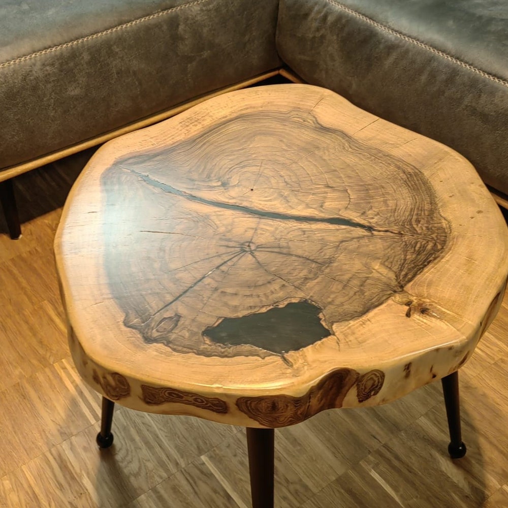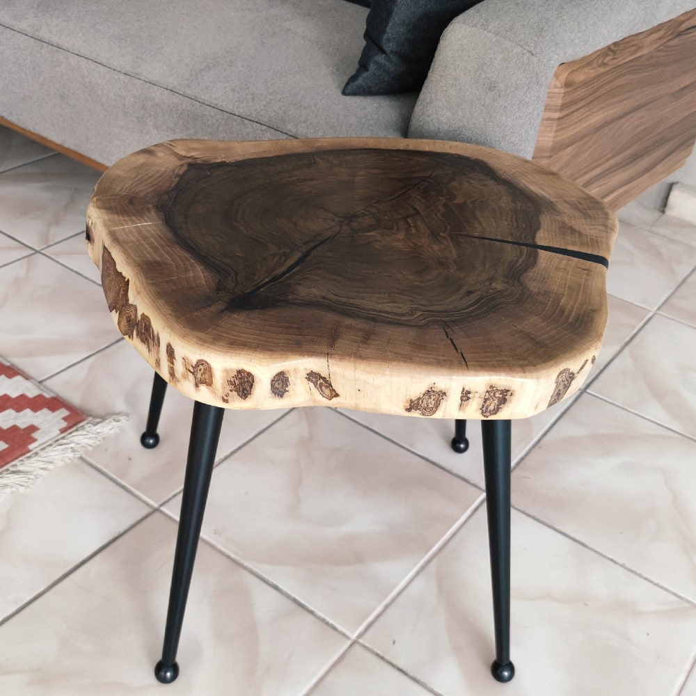 Live Edge Coffee Table, Living Room Wooden Table, Solid Wood Side Table, Living Room Furniture, Modern Round Center Table, Wood Slab Table