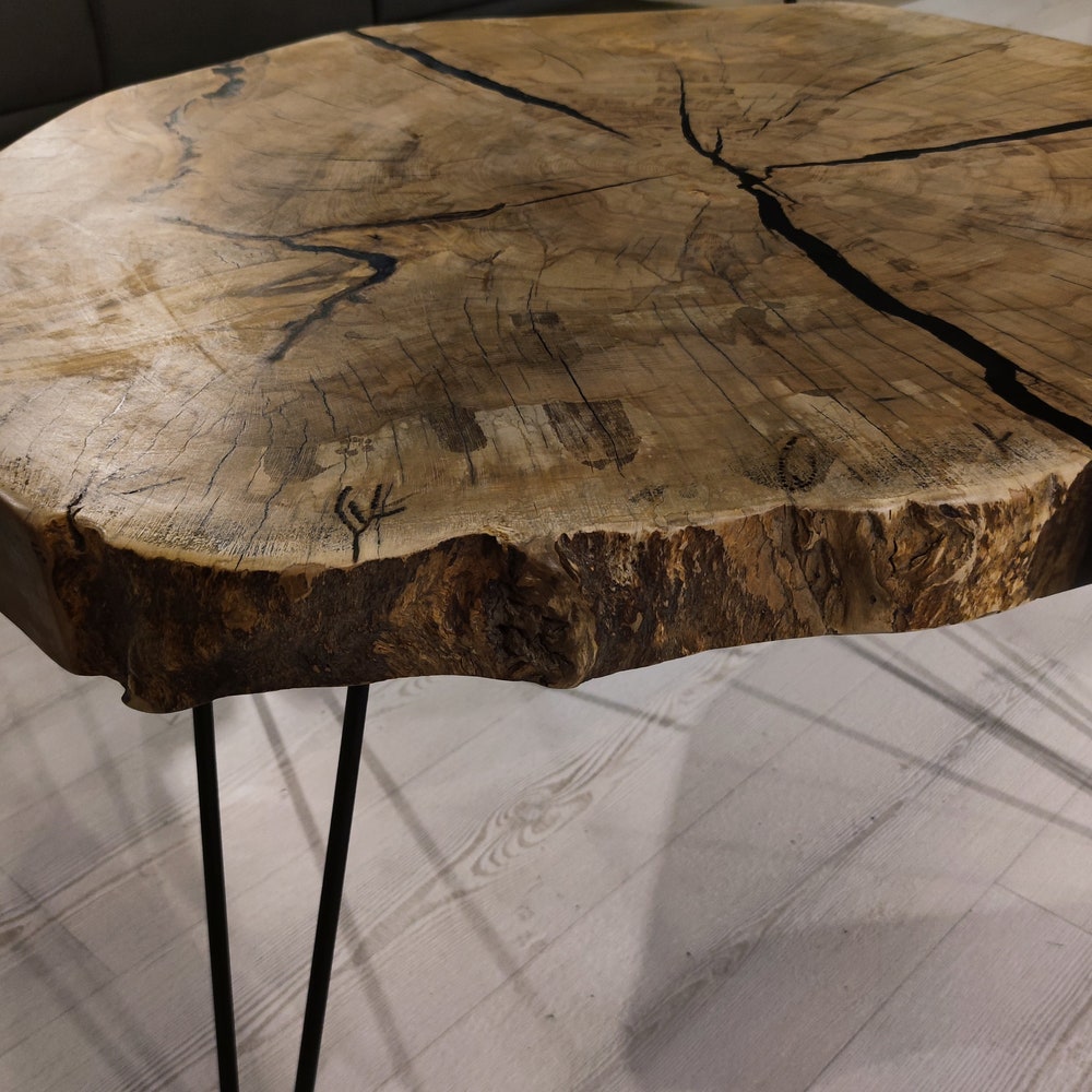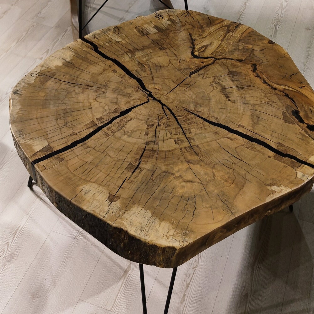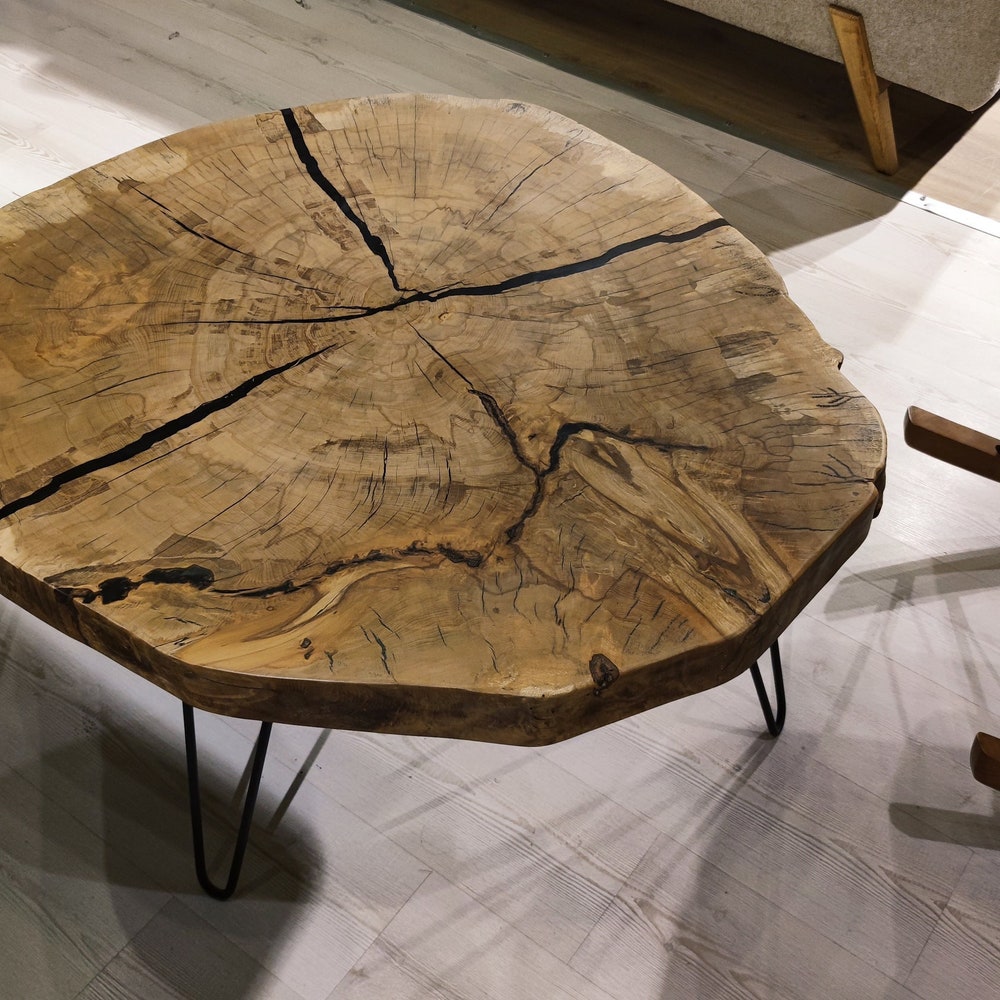 Live Edge Coffee Table, Living Room Wooden Table, Solid Wood Side Table, Living Room Furniture, Modern Round Center Table, Wood Slab Table