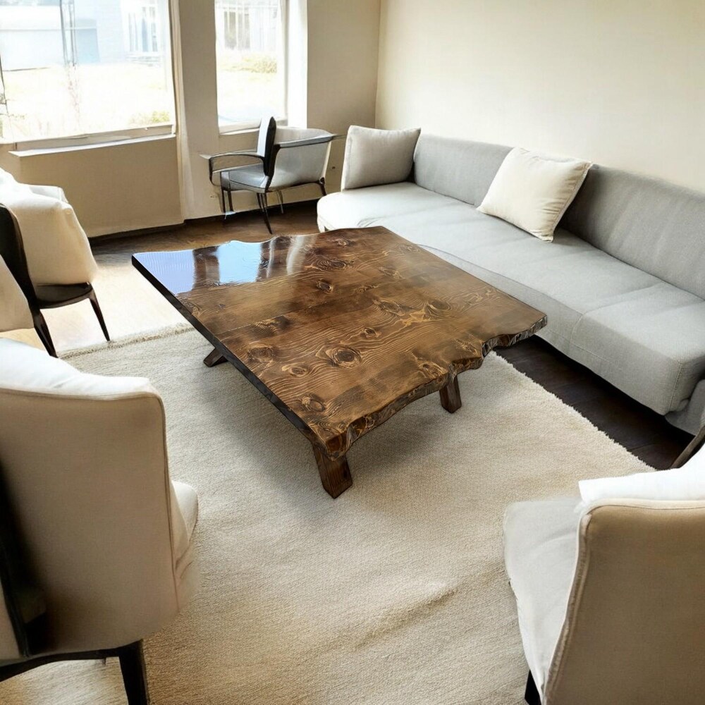 This solid wood table is not only a centerpiece but a conversation starter, blending rustic charm with timeless elegance. Whether you’re enjoying your morning coffee or entertaining guests, it provides both functionality and natural aesthetics in your living room.