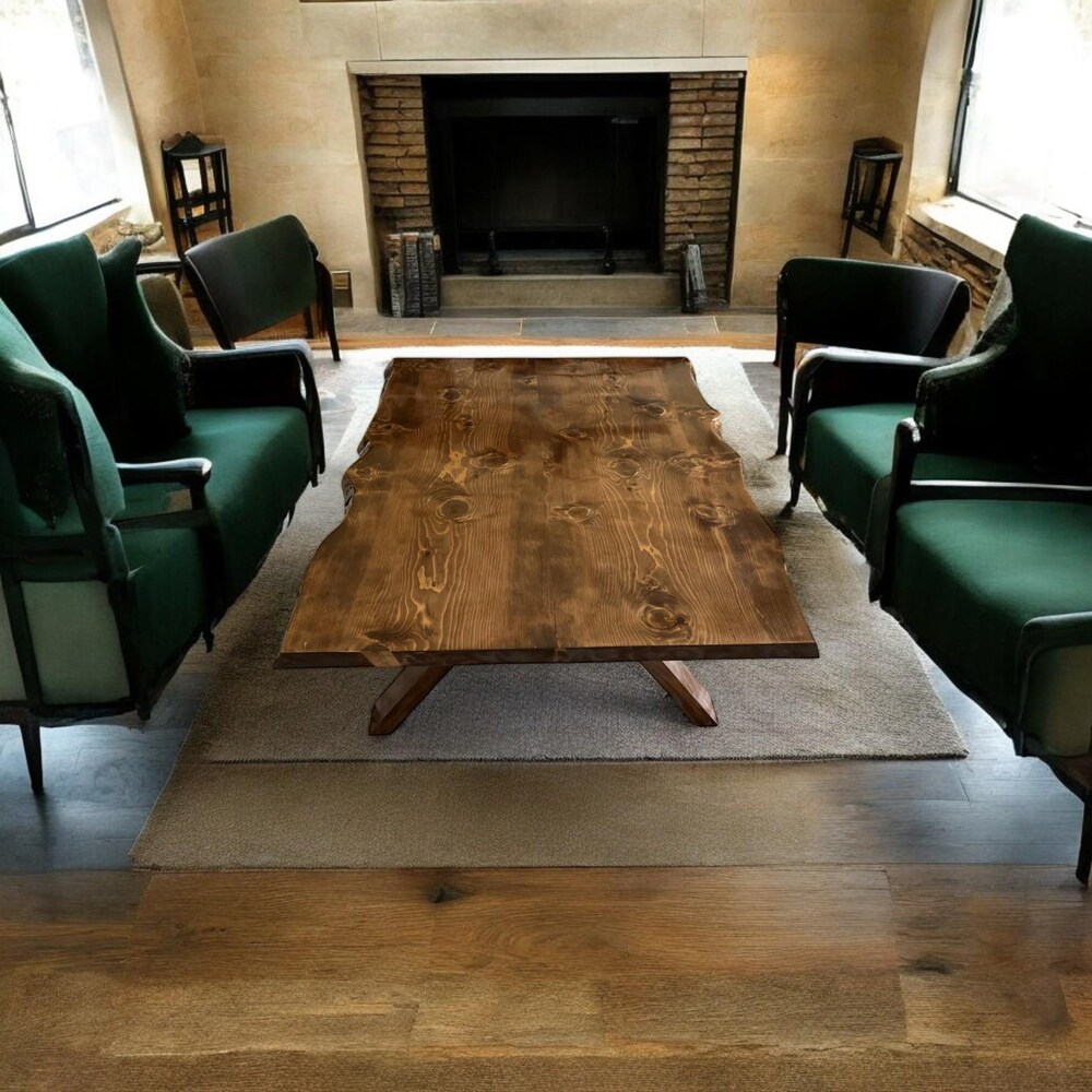 Bring the warmth and character of nature into your living space with this Live Edge Coffee Table, crafted from solid wood with its natural edge preserved to highlight the beauty of organic design. Each handmade rustic wooden table tells a unique story through the grain, knots, and natural imperfections of the wood — no two are ever the same.
