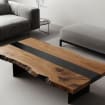 Discover the perfect blend of rustic charm and modern sophistication with our Walnut Live Edge Coffee Table with Metal Stripe.