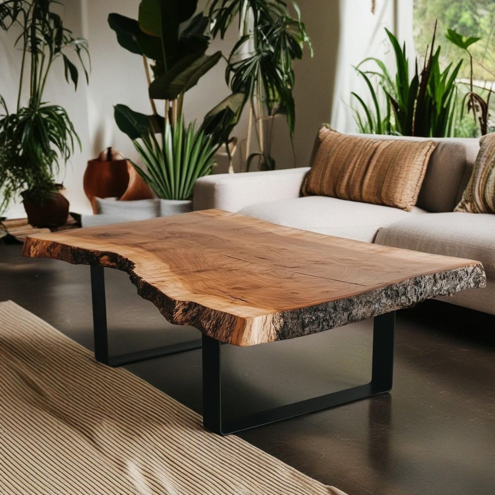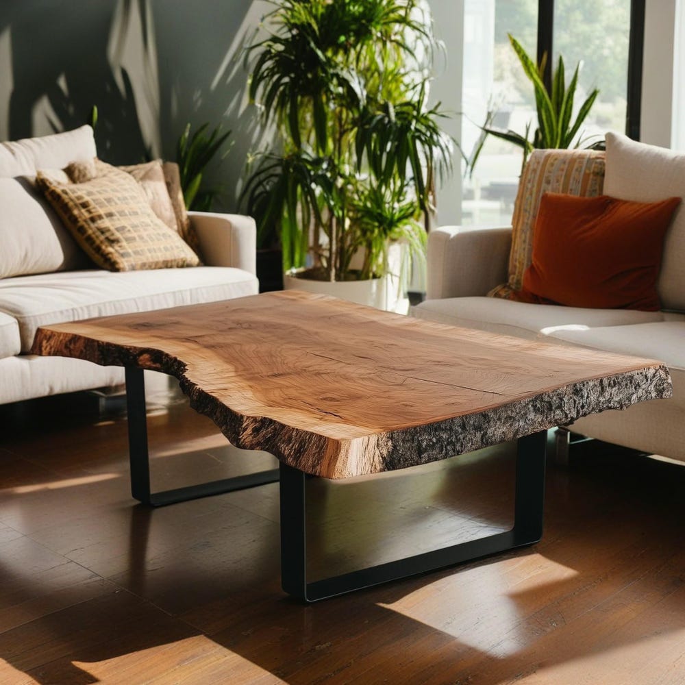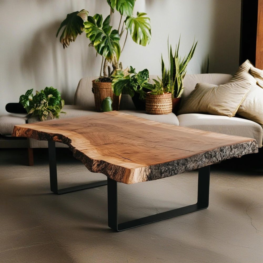 Live Edge Coffee Table, Wooden Coffee Table, Live Edge Sofa Table, Handmade Live Edge Table with Metal Legs