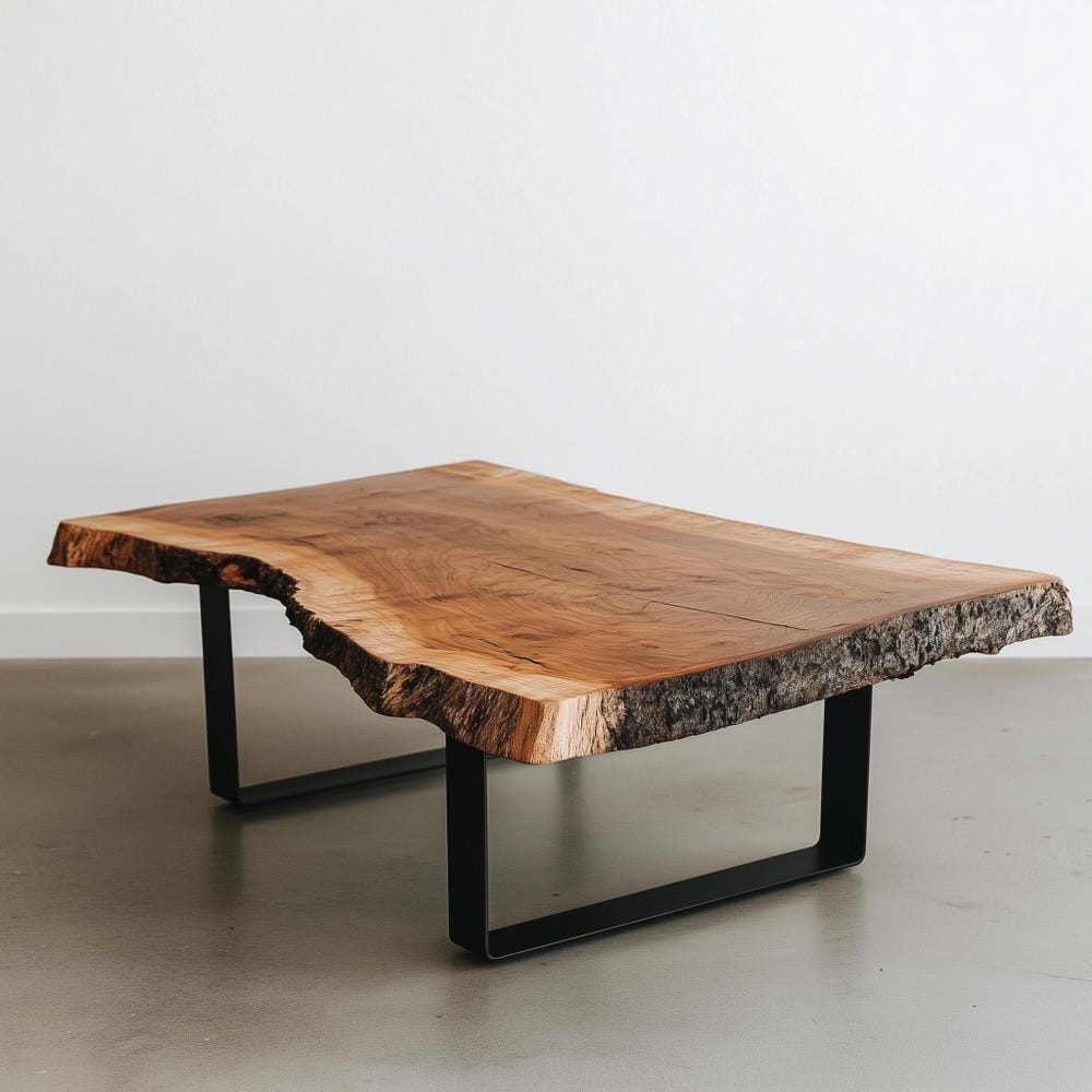 The live edge design highlights the organic lines of the wood, bringing a touch of nature into your living space. Paired with sleek metal legs, this coffee table effortlessly bridges the gap between rustic allure and contemporary style. The contrast between the raw, natural wood and the refined metal legs creates a striking visual harmony, making this table a standout piece in any setting.