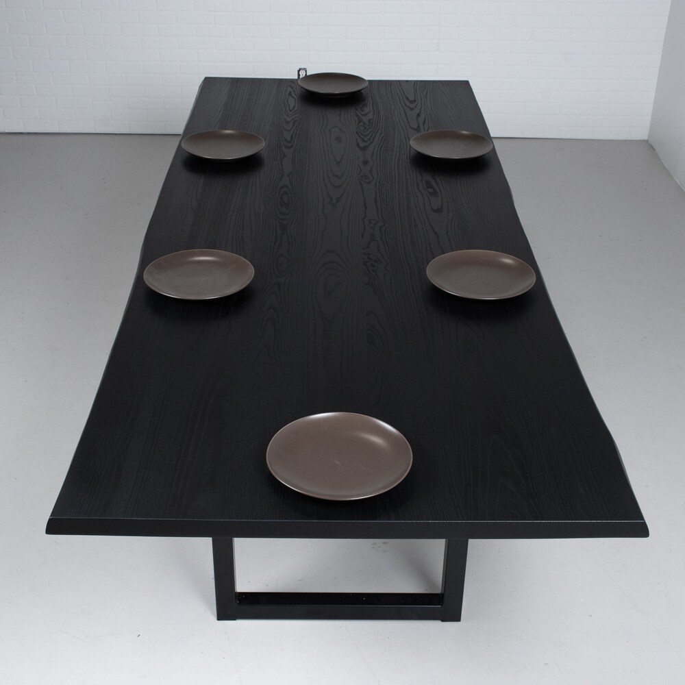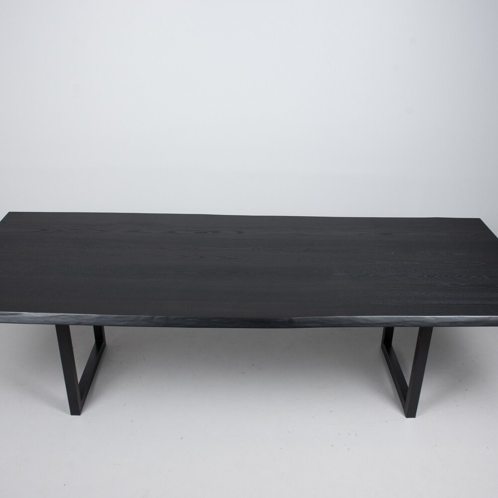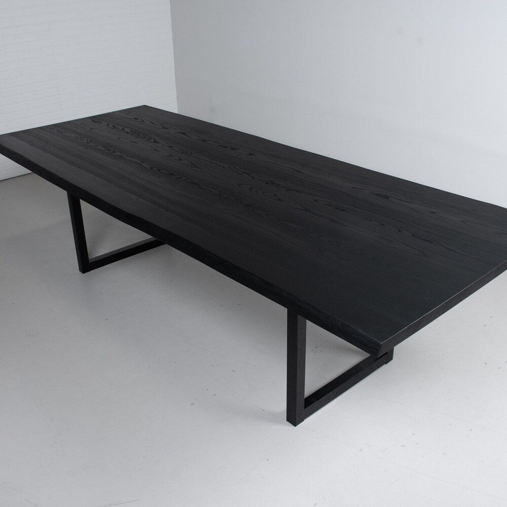 Live Edge Dining Table, Modern Black Table on Steel Legs, Black Live Edge Kitchen Table in Ash, Live Edge Dining Table Black