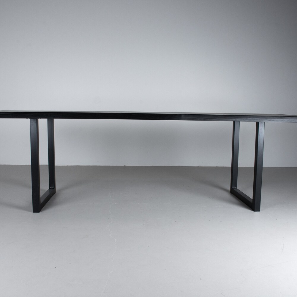 Embrace the drama of a black live edge dining table as a modern take on a live edge table. Set on black steel legs this table is the focal point of a dining room. We build every table to order so there are many ways to make this table perfect for you.
