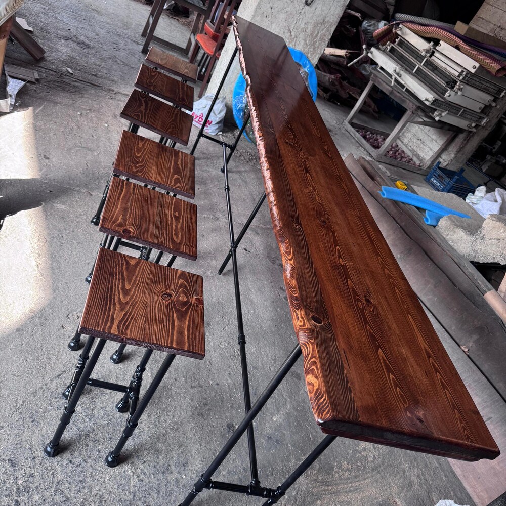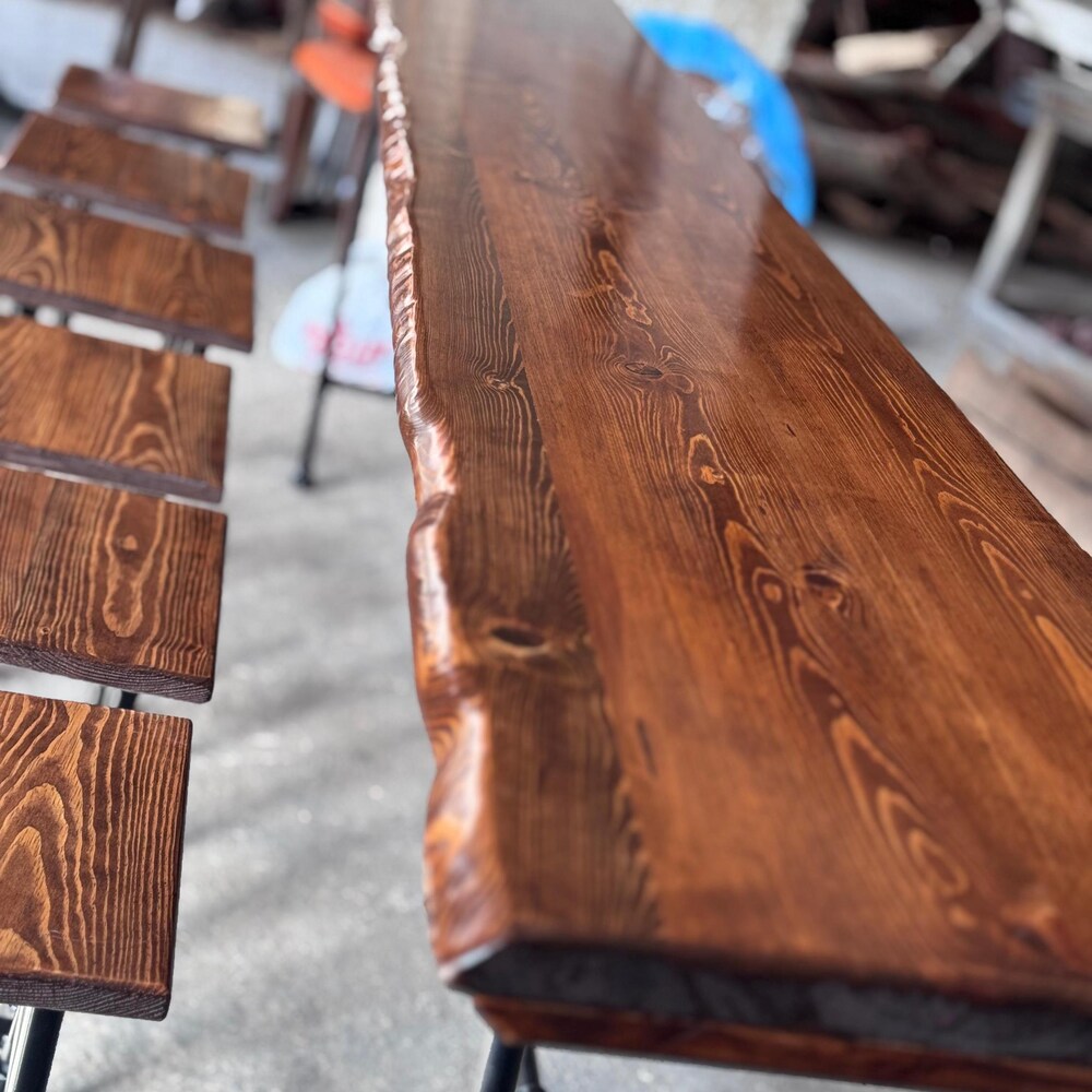 Live Edge Pub Table & Bar Stools, Bar Height Table Set, Long Bar Table and Chairs, Outdoor Bar Table Set, Sofa Bar Table for Home Bar