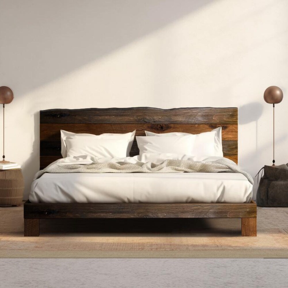 Live Edge Rampart Bed – Quick Ship – Modern Rustic – Solid Wood – Platform Bed Frame & Headboard – Handmade in USA