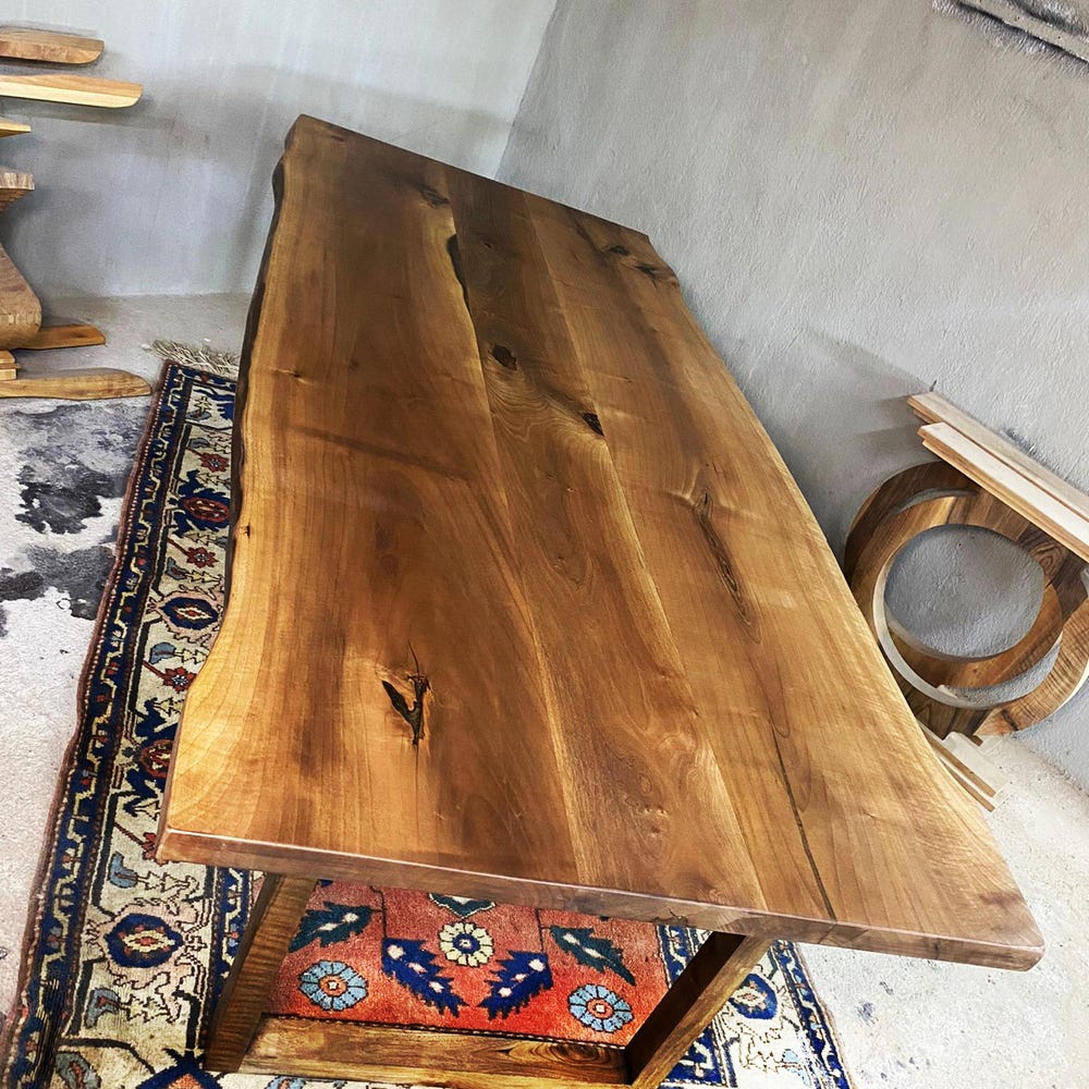 Live Edge Solid Walnut Wood Dining Table, Kitchen Table, Writing Desk, Computer Desk, Natural Walnut Wooden Modern Table