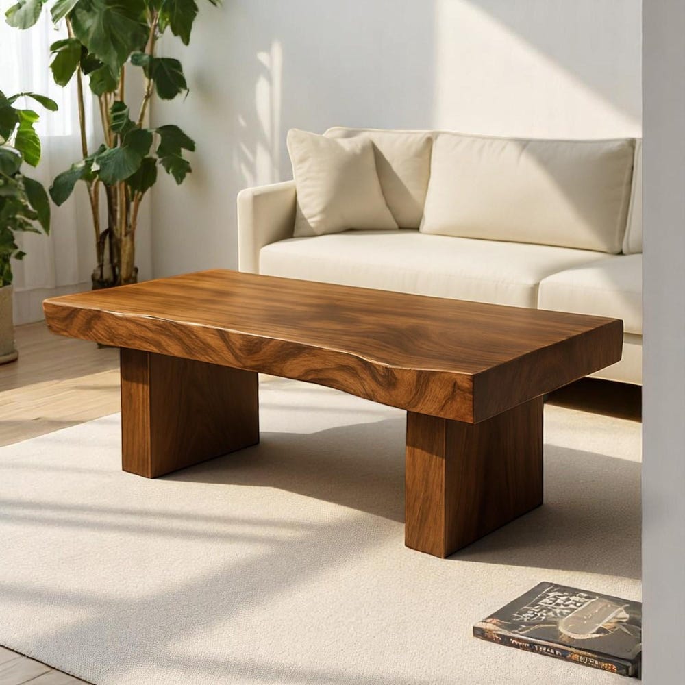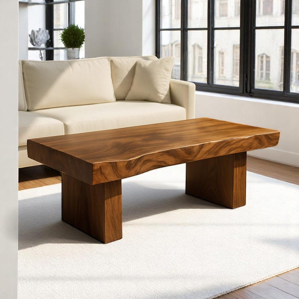Bring the natural beauty of walnut into your home with this Live Edge Solid Wood Coffee Table, handcrafted to highlight the raw elegance of premium hardwood. This standard height coffee table blends modern minimalism with rustic farmhouse charm, offering a warm, organic centerpiece for your living room.