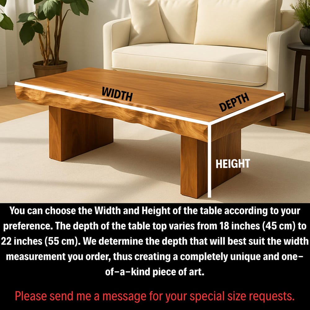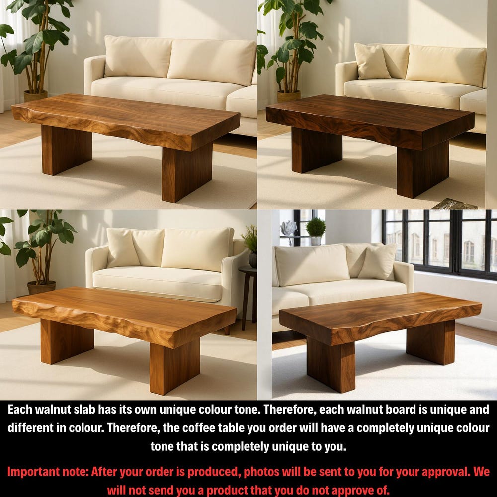 Live Edge Solid Wood Coffee Table, Natural Edge Coffee Table, Handmade Walnut Center Table, Rustic Modern Wood Table for Living Room