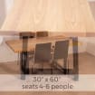 This live edge table top is made of solid ash. The 30” x 60” size we photographed seats 4-6 people. Because we build each table to order, we can build your table in exactly the size you need. If your size isn’t listed or if you have any questions, message us. We’re here to help!