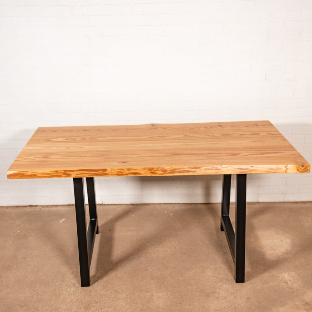 Live Edge Table Top on Steel A Frame Legs, Wood Kitchen Table, Light Colored Wood Table, Small Wood Table, 5 Foot Solid Wood Kitchen Table