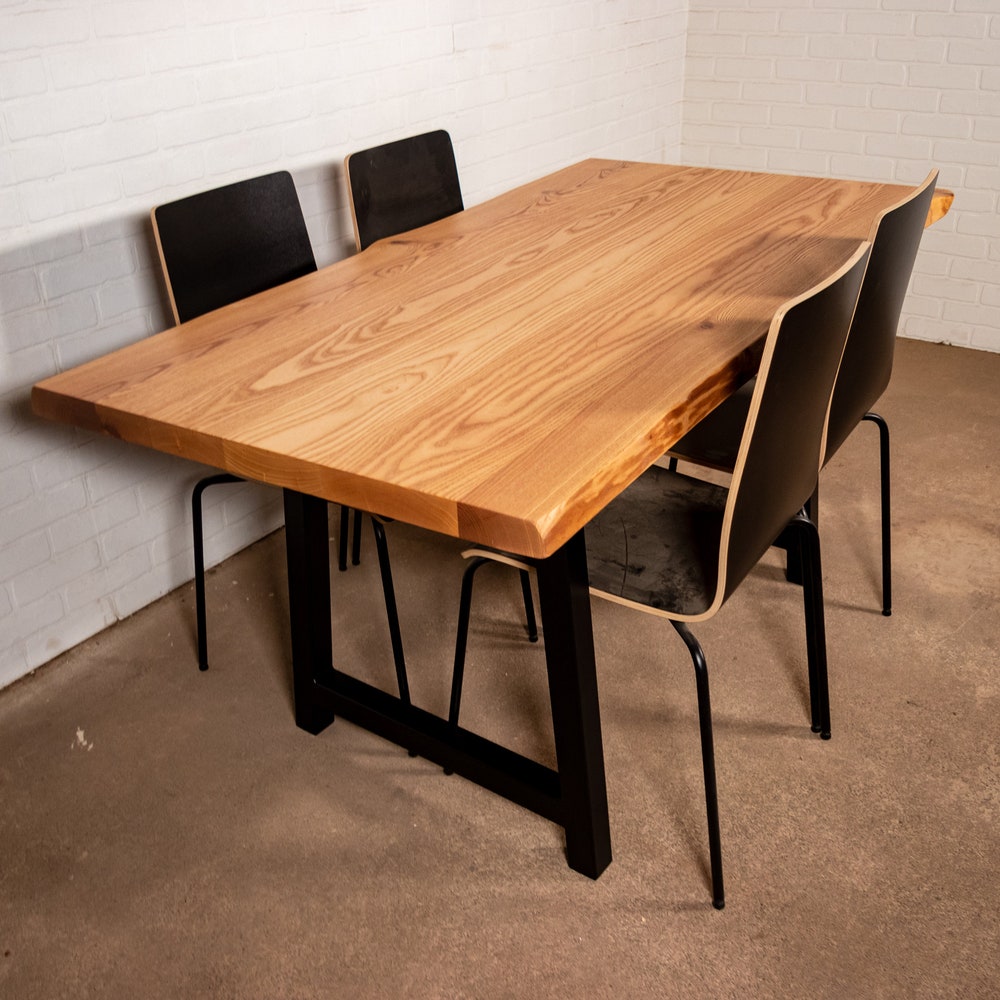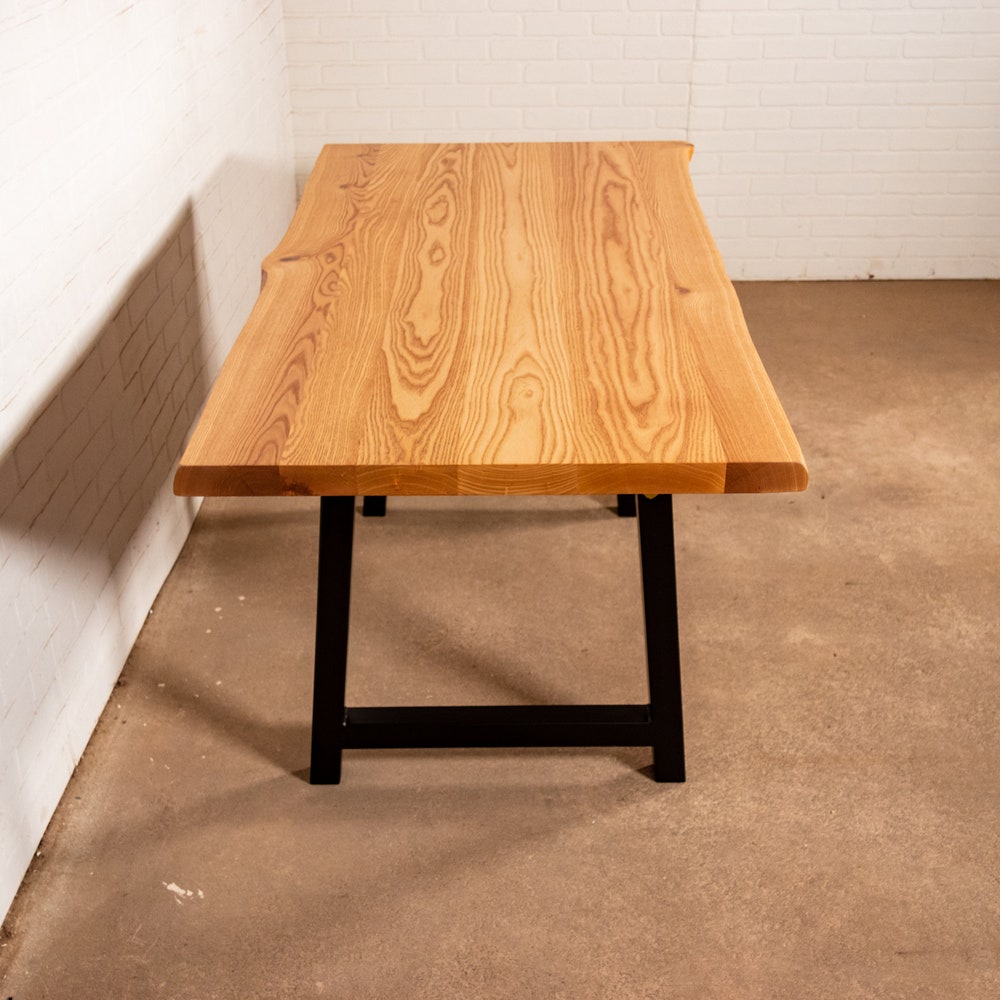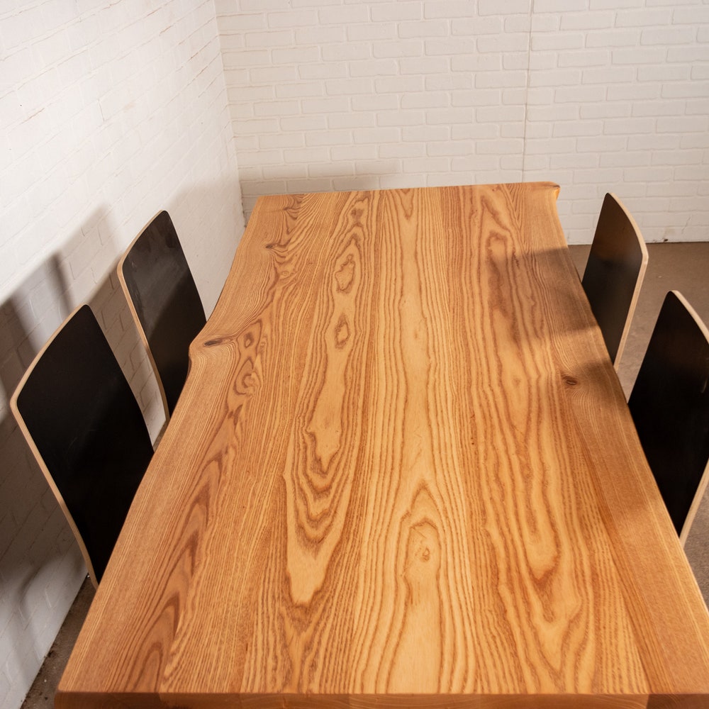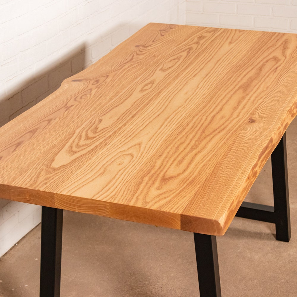 This table top is just under 2″ thick and has been made with locally sourced ash. It features a live edge. More details about the table can be found here: