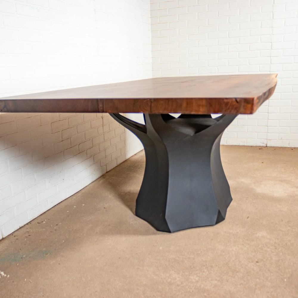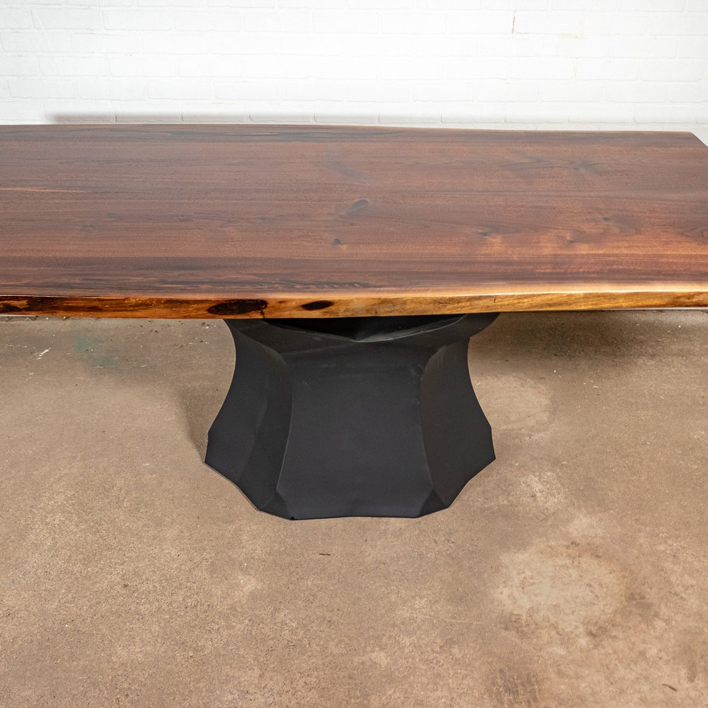 Live Edge Table with Bookmatch Walnut on Pedestal Table Base, Live Edge Walnut Table on Namu Base, Custom Walnut Dining Table Top