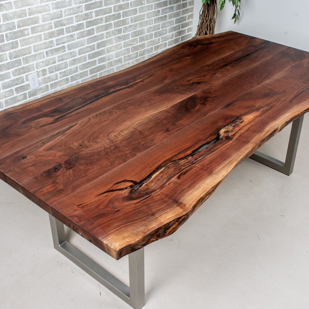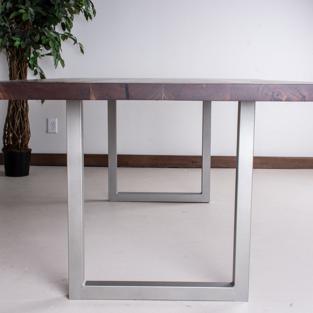 Live Edge Walnut Table, Custom Live Edge Dining Table on Square Steel Legs, Modern Industrial Table, Solid Walnut Live Edge Table