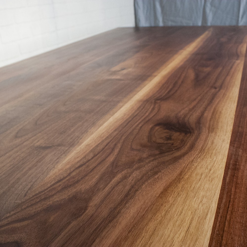 We finish the walnut with an all-natural oil that we hand rub into the wood. It gives the wood a matte finish. We like this finish because it is durable having been originally designed for floors and is food safe. More information about our finish is available here: https://www.loewendesignstudios.com/blogs/news/why-we-use-rubio-monocoat-to-finish-our-wood-tables