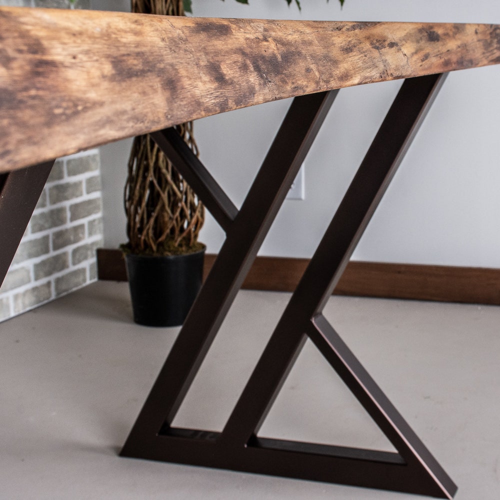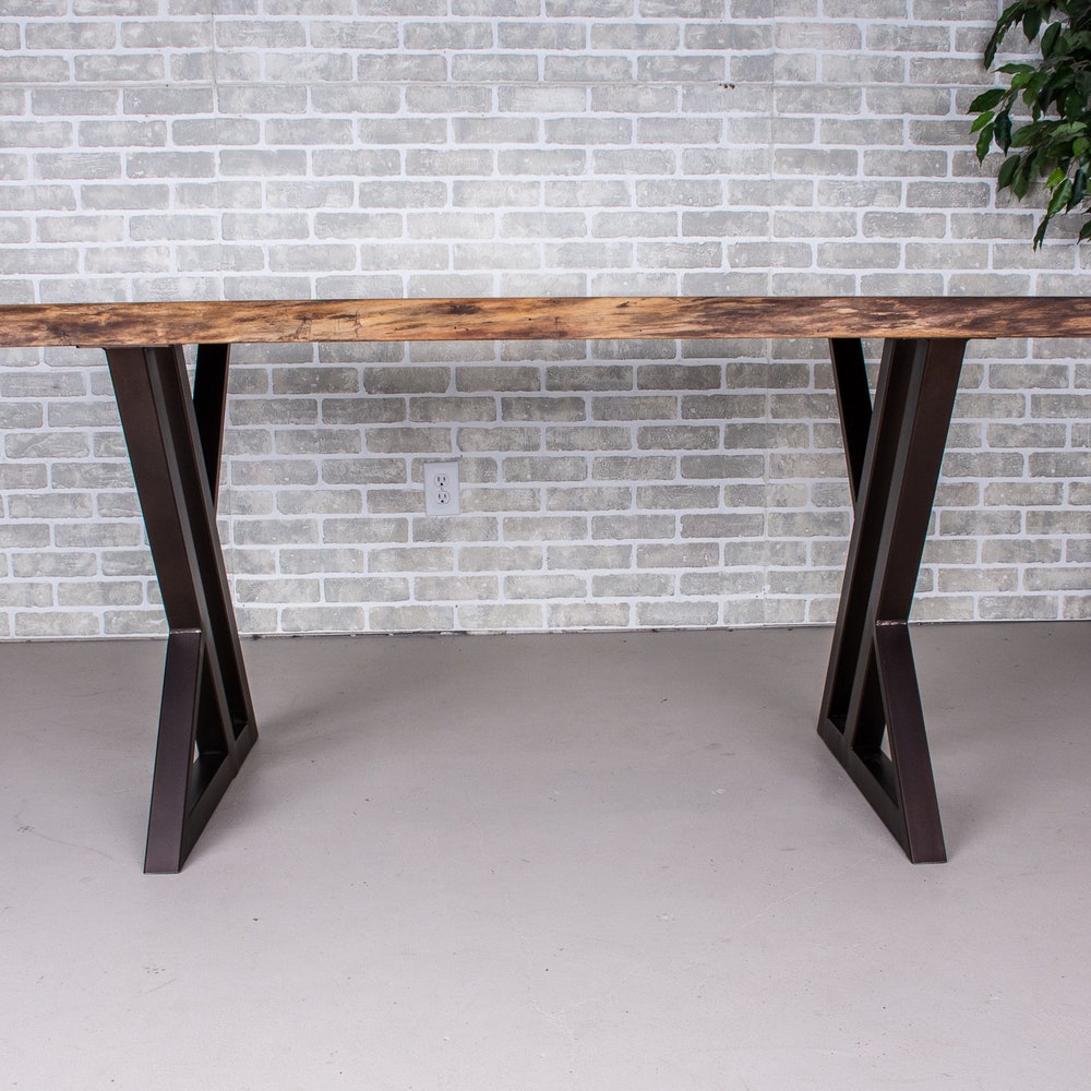 Please note that prices shown include shipping, duties and tariffs. All of our designs can be customized to suit your needs. The burnt penny finish on these steel table legs adds a beautiful dimension to this table. It subtly pulls out the red leaning tones in the walnut. We build every table to order so […]
