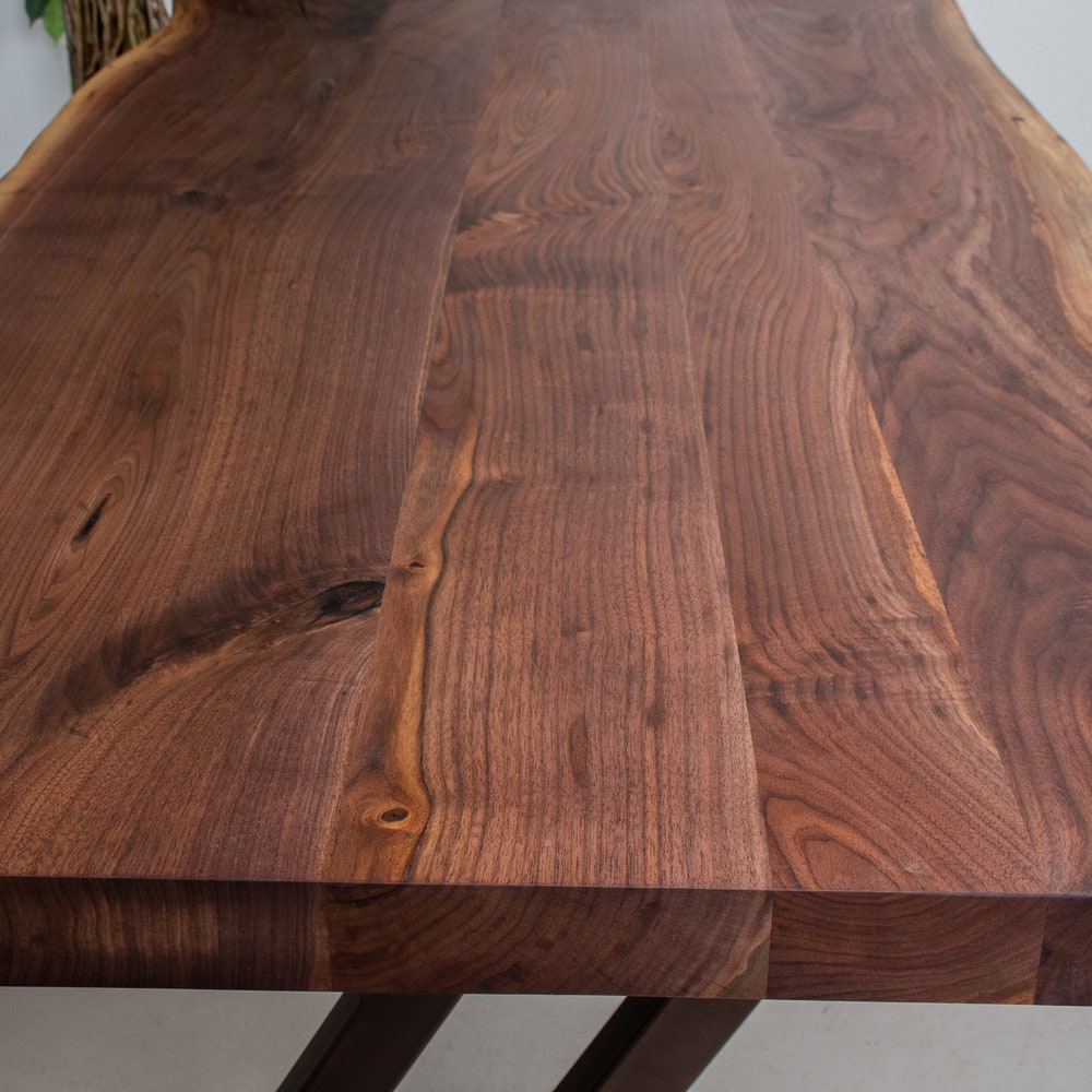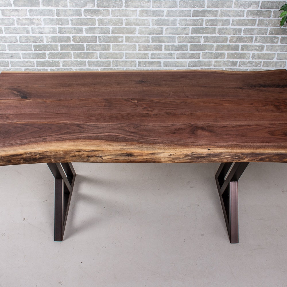 Live Edge Walnut Table on Brown Steel Table Legs, Natural Cut Wood Dining Table, Live Edge Dinner Table, Solid Walnut Dining Table