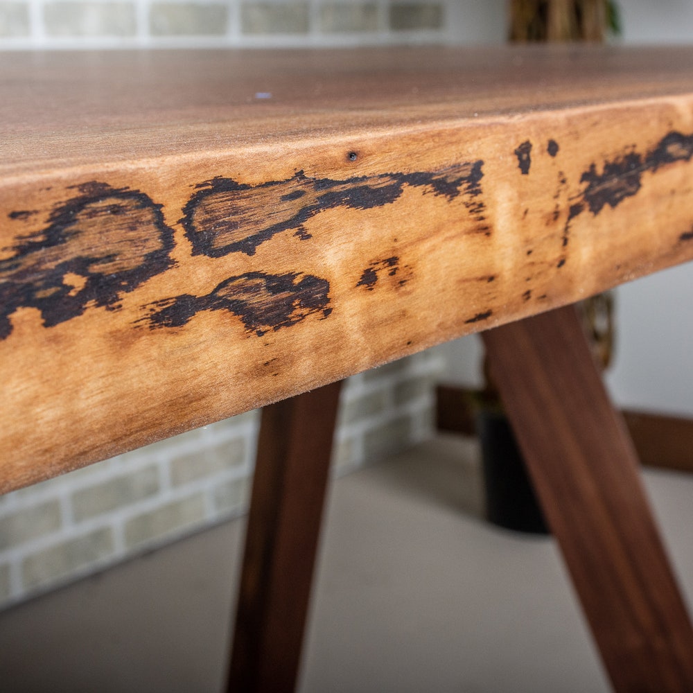 Bring nature indoors with this live edge walnut table. A live edge table connects you to the original tree that the planks came from and highlights the unique nature of each one. And the walnut highlights the beautiful range of color – from browns, to reds, to blondes. We build every table to order so there are many ways to make this table perfect for you.