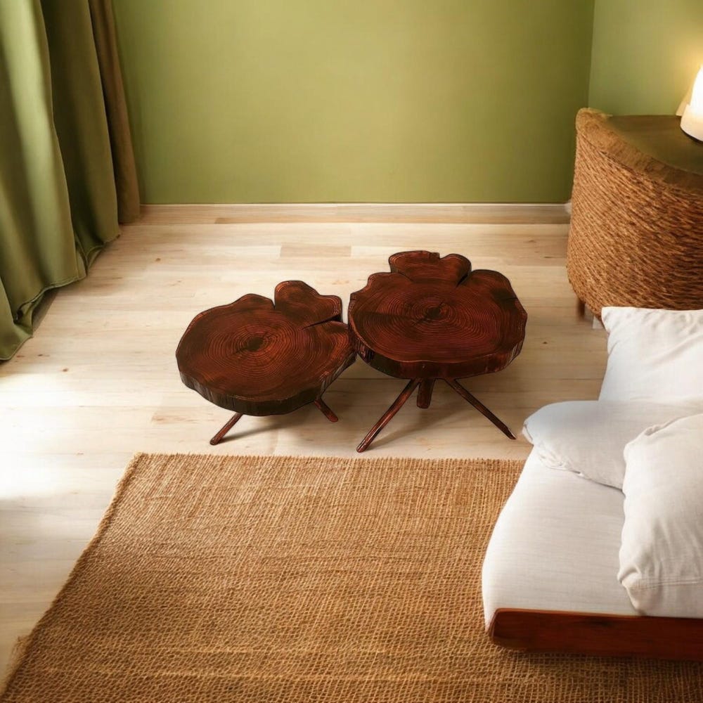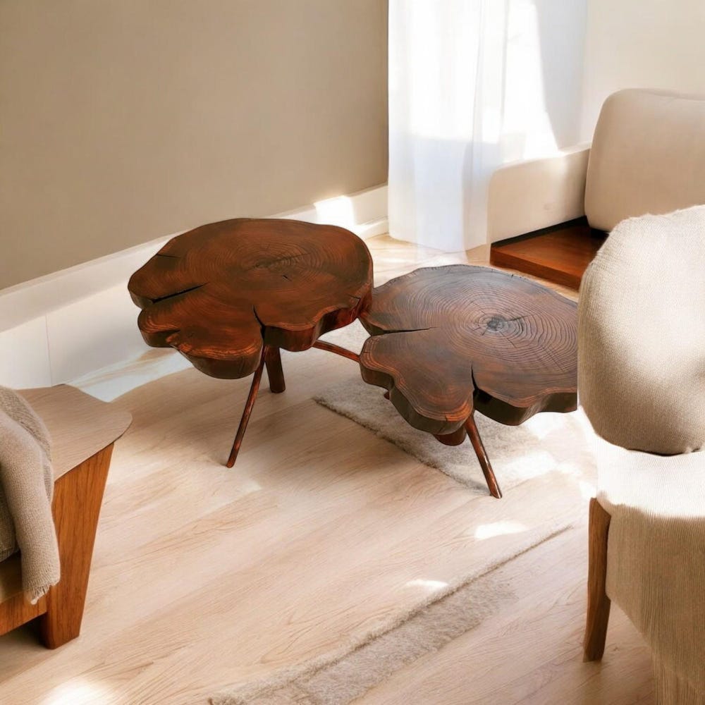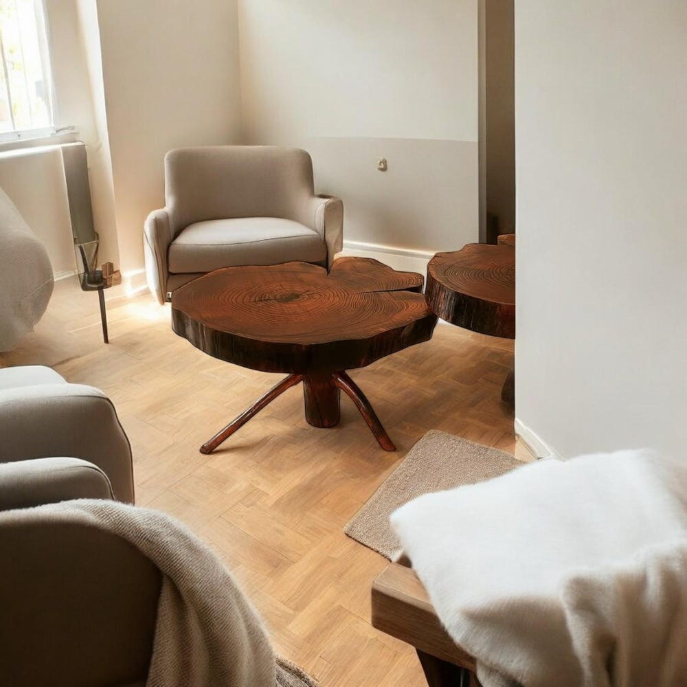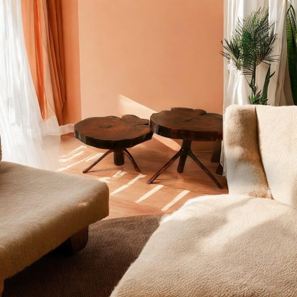 Bring the warmth of nature into your home with this single-piece handcrafted live edge wood side table. Created from a solid tree slice, this piece offers both a rustic charm and modern simplicity — perfect for those who appreciate authenticity in their decor.