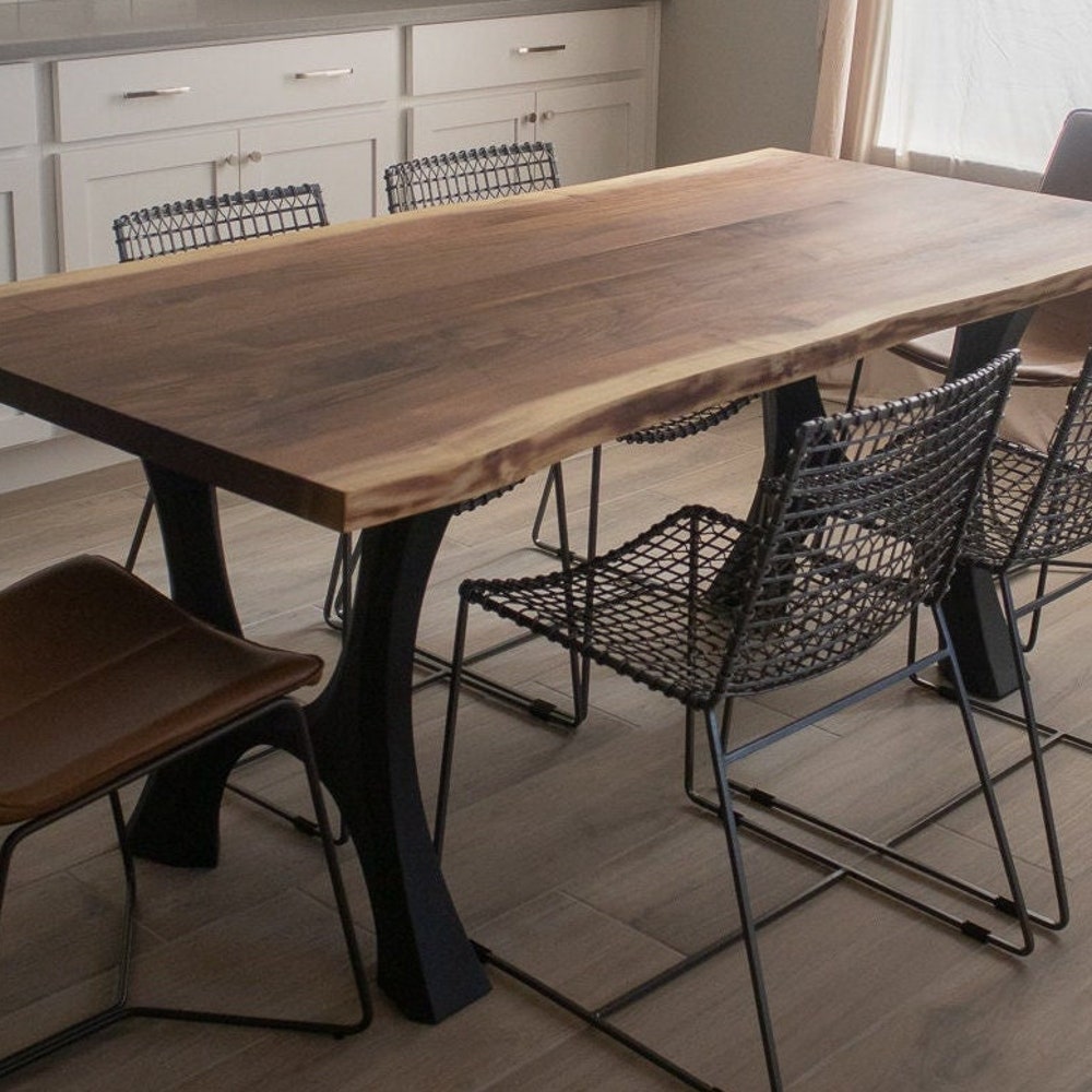 Live Edge Wood Slab Table, Live Edge Walnut Table on Steel Haru Legs, Custom Walnut Dining Table, Live Edge Dining Table