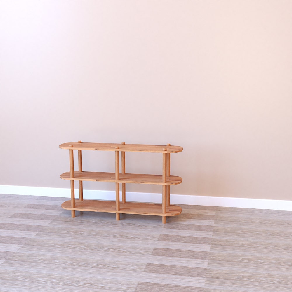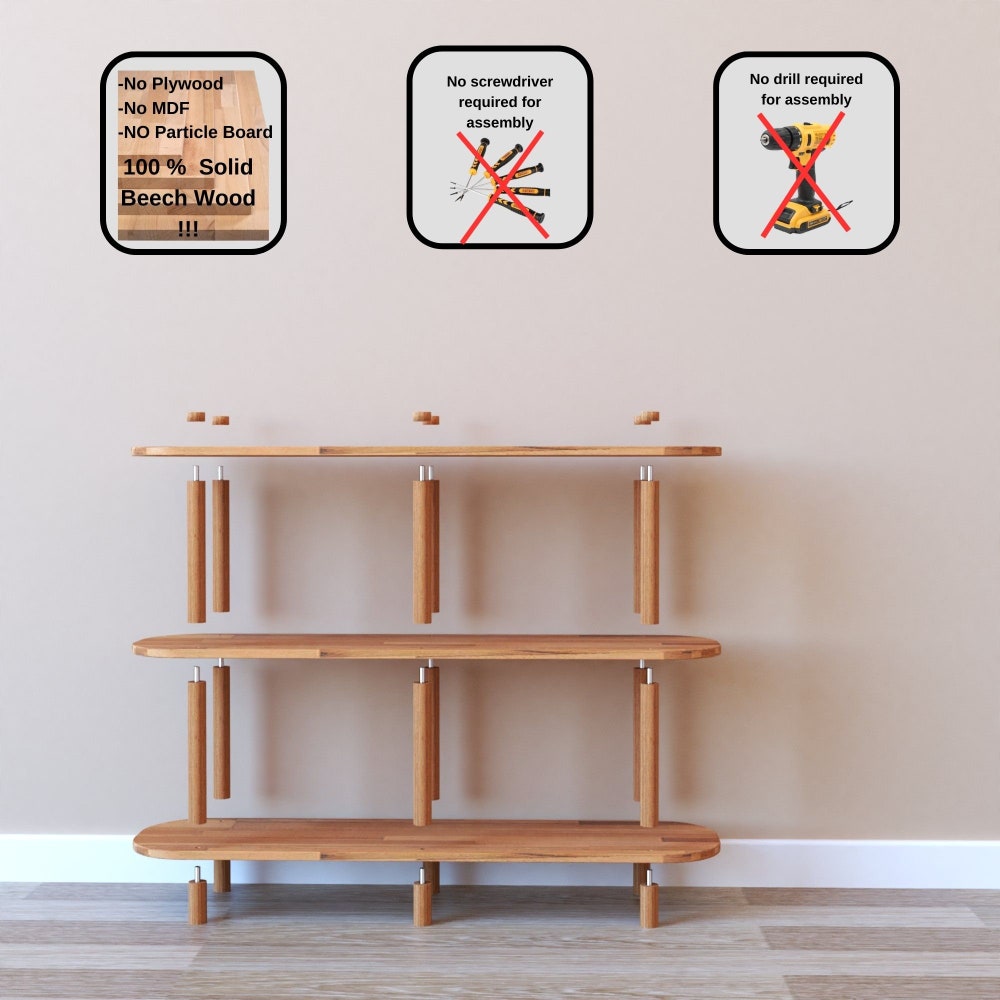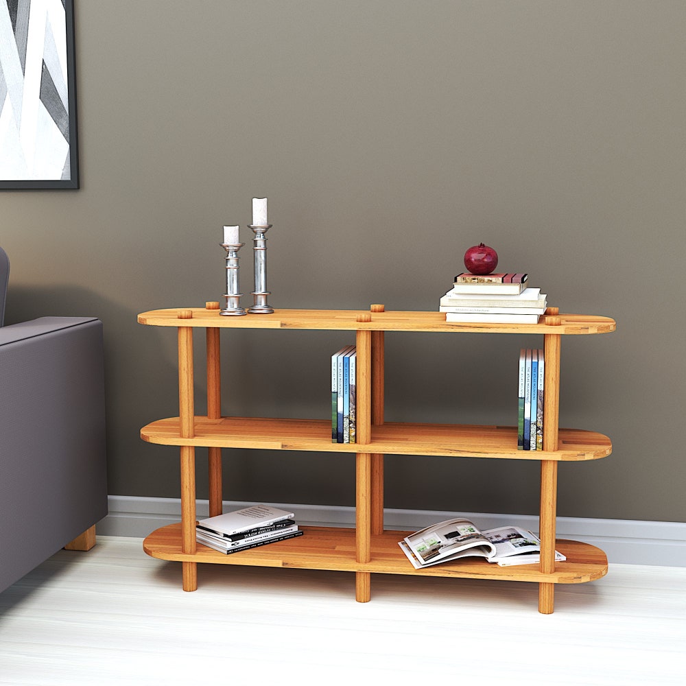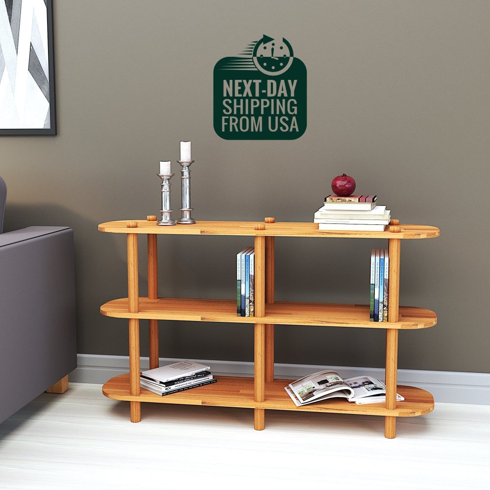 Living Room Short Bookcase With 3 Shelves, Solid Beech Wood Large Media Console, Solid Wood TV Stand, Minimalist Large Entertainment Center