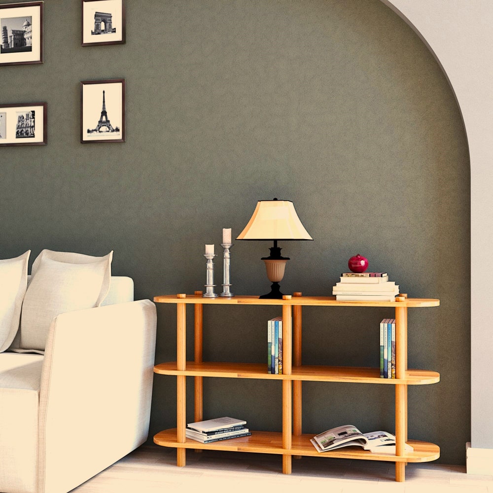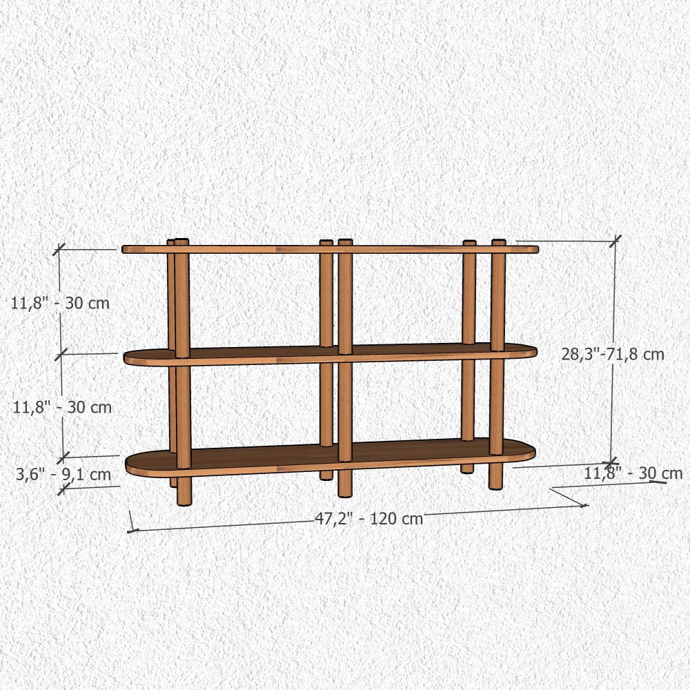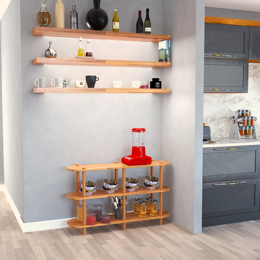 This handmade minimalist triple shelf is a wonderful choice to add both elegance and functionality to your home decor. The rounded corners contribute to a modern and graceful design. Furthermore, the use of solid wood enhances durability and quality.