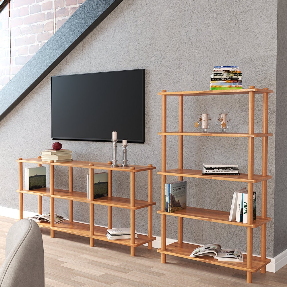 Living Room Short Bookcase with Shelves, Custom Wood Open Bookcase, Solid Beech Wood Object Display, Decorative Solid Wood Bookshelf