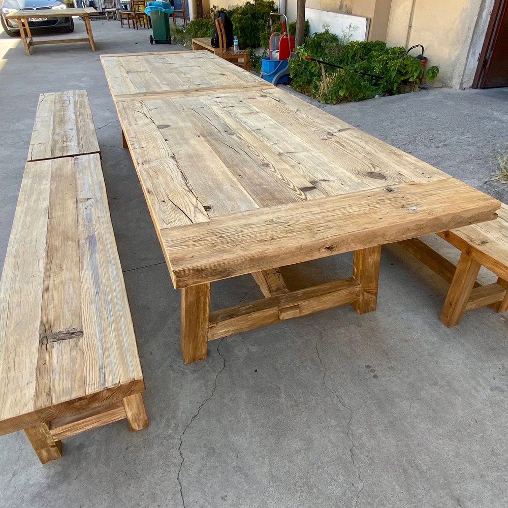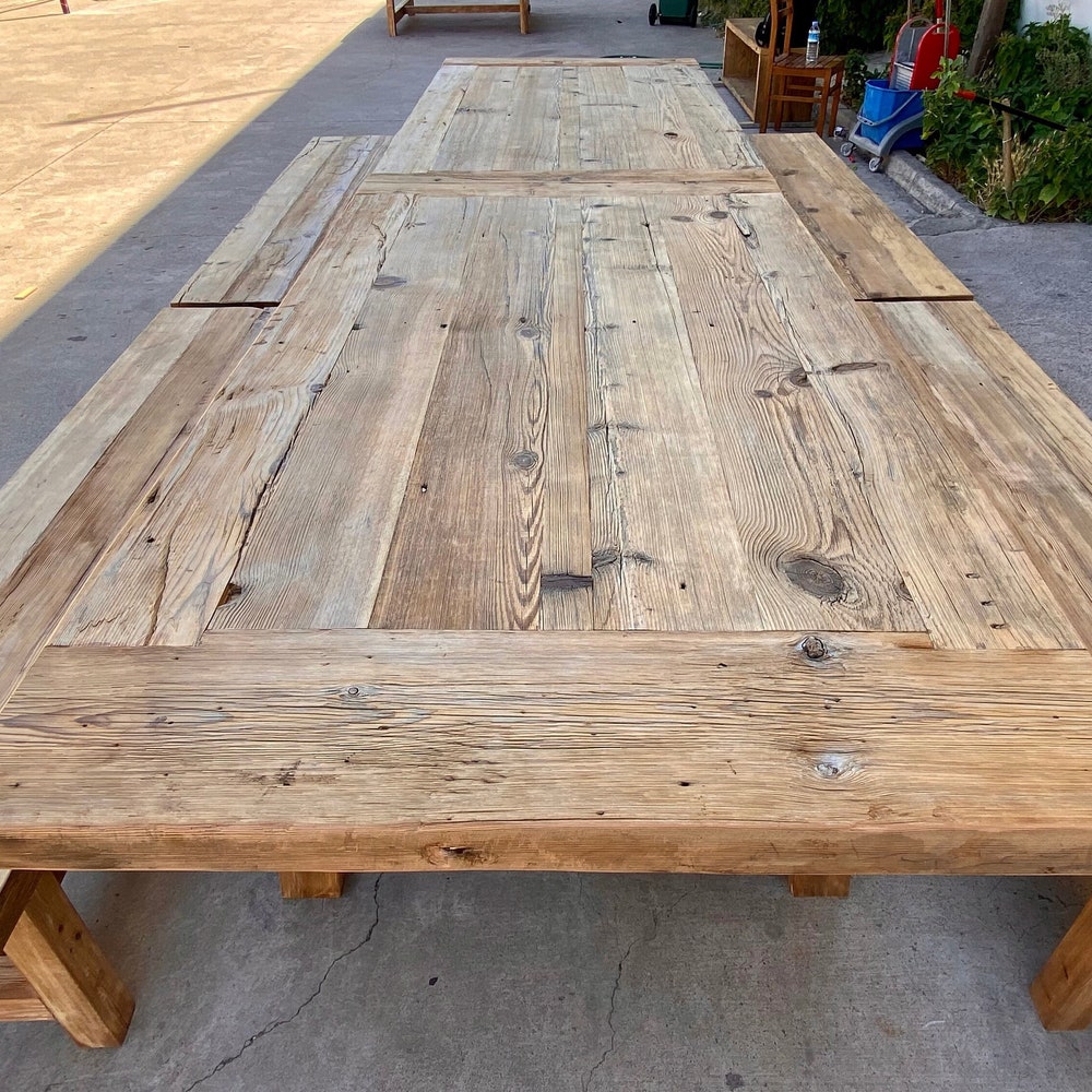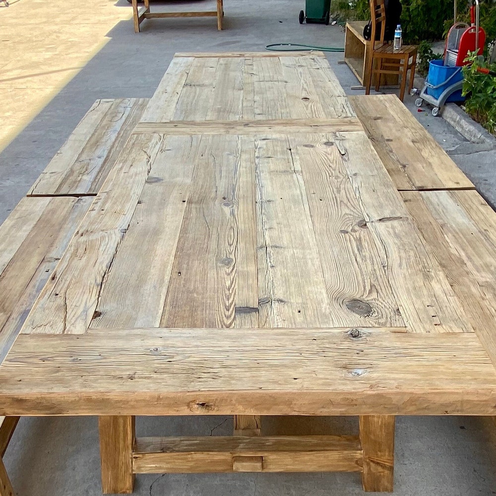 ♻️Our unique Dining Table is made with 60 years old wood. No polish or aging has been applied to the table top you see in the picture. I would like you to take a detailed look at the natural color and texture of the wood.