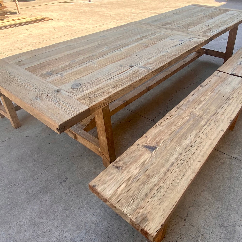 Long Dining Table Reclaimed Wood, 12 Foot Farm Table, Large Dining Table Rustic, Reclaimed Wood Dining Table and Bench