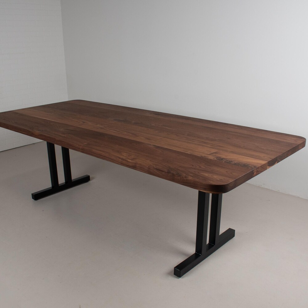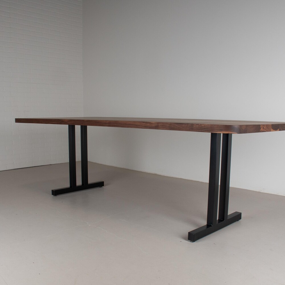 Long Walnut Dining Table, Walnut Table Top on Black Steel Dining Legs, 8 Foot Wood Table for Dining Room or Kitchen, Solid Wood Table Top