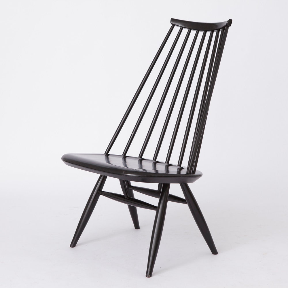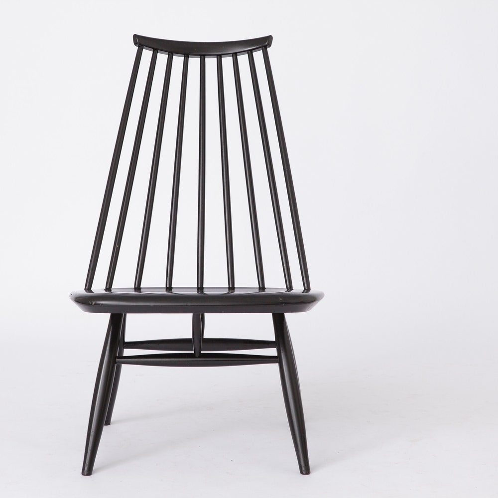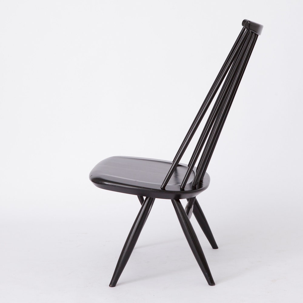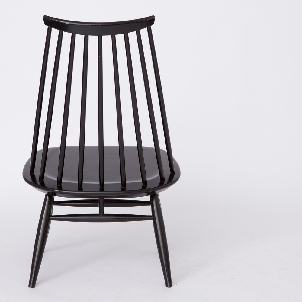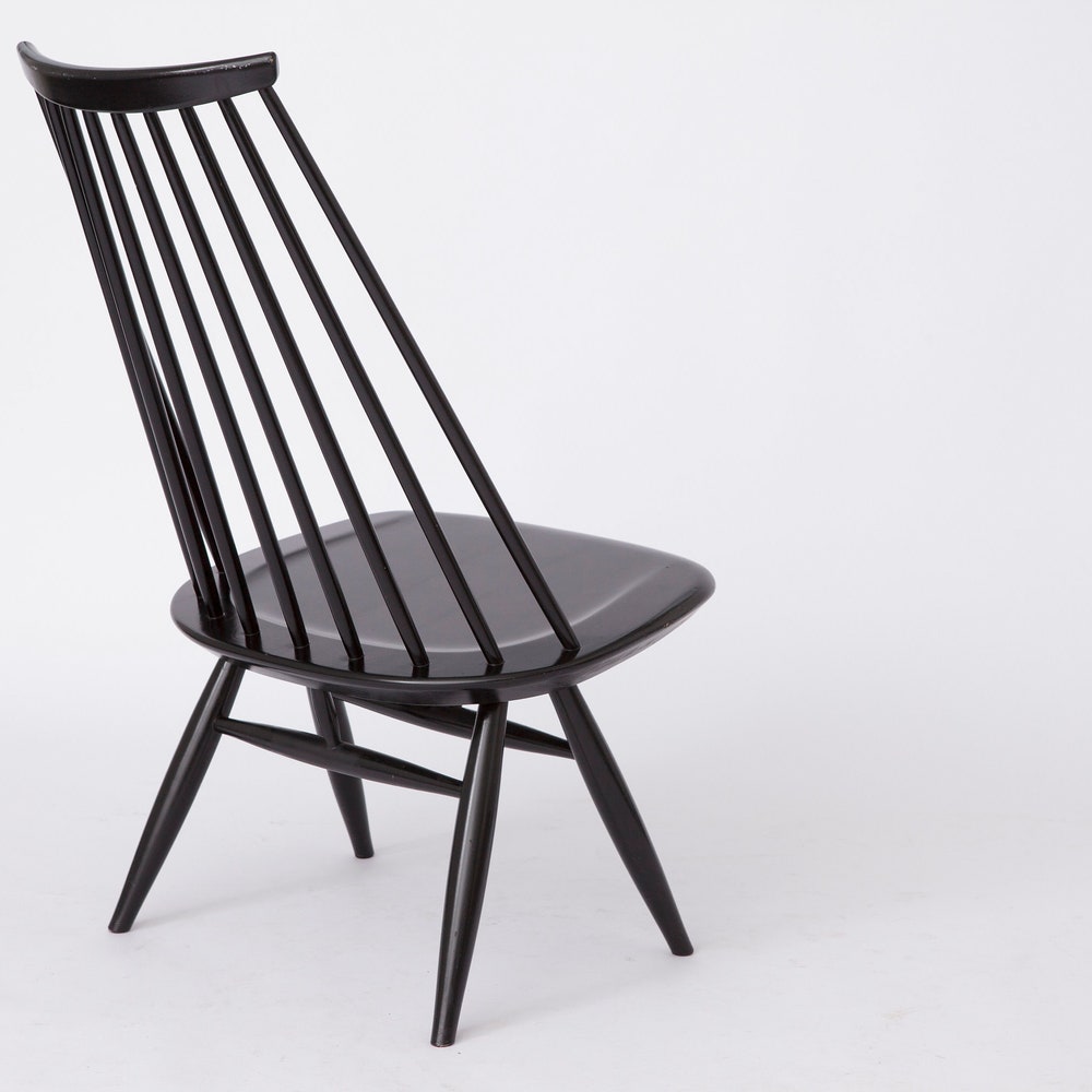 Step into the world of Finnish design excellence with this Mademoiselle lounge chair by Ilmari Tapiovaara for ASKO. First designed in 1956, this iconic piece features original black lacquered birch and is in very good condition. A true collector’s item, complete with the maker’s mark under the seat.