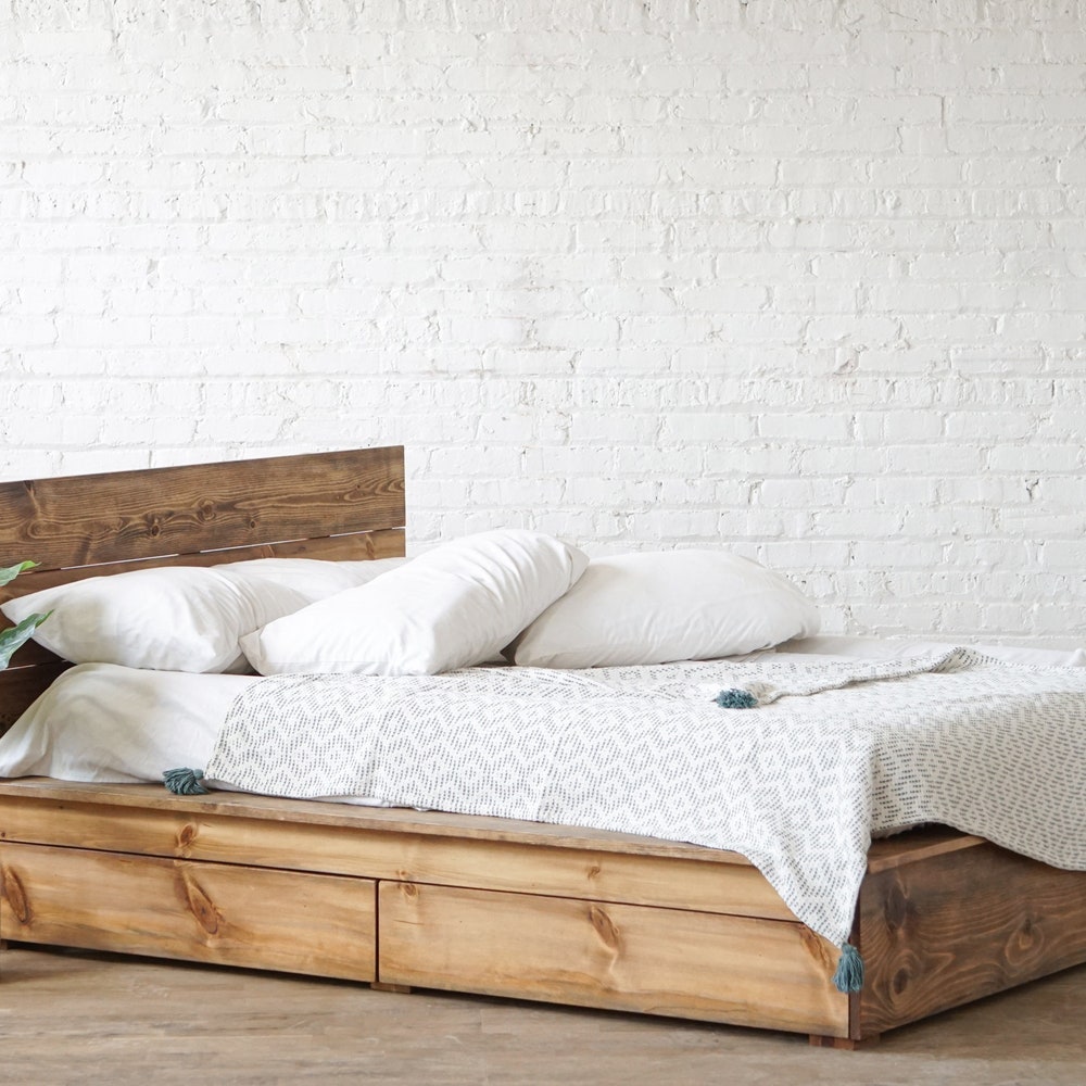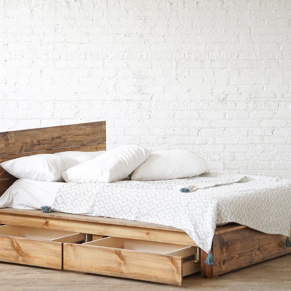 Low Pro Stow – Rustic Modern Platform Bed Frame and Headboard – Loft Style – Storage Bed
