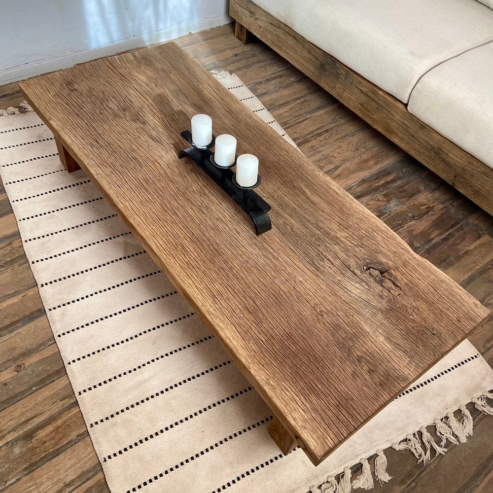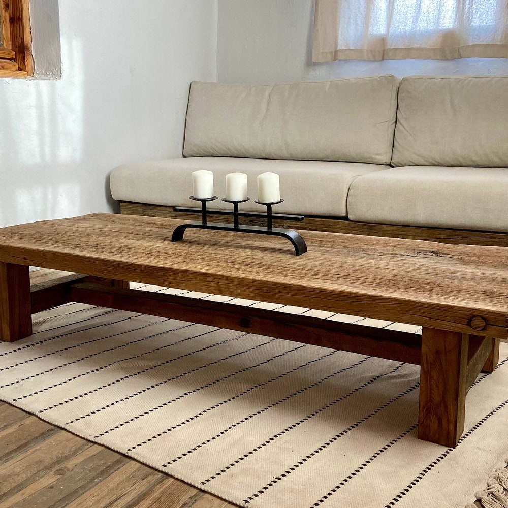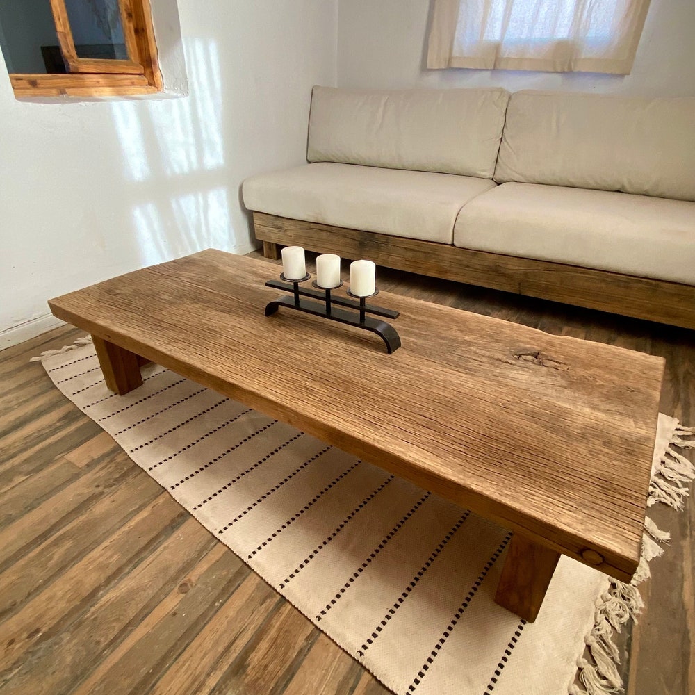 Low Rectangle Wood Coffee Table, Rustic Reclaimed Coffee Table Long, Rustic Farmhouse Table, Rustic Barn Wood Table