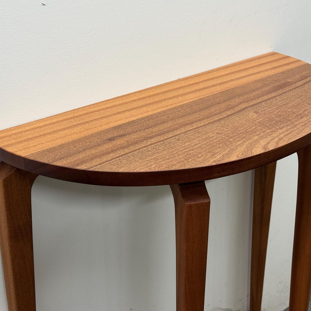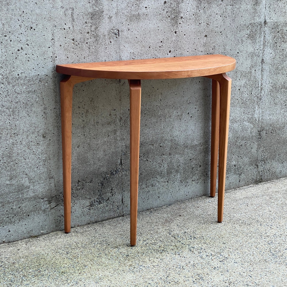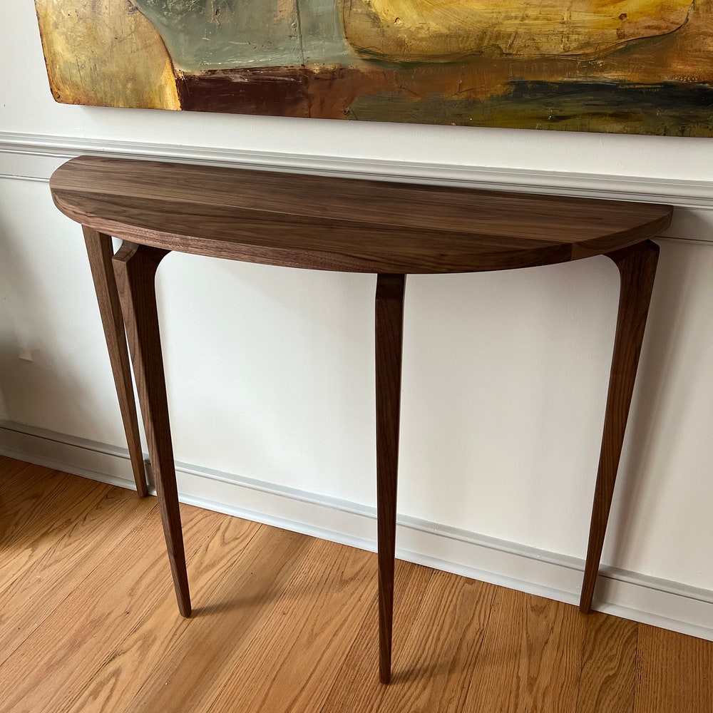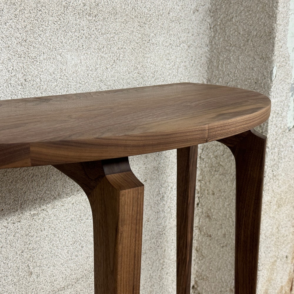 Sculptural entryway table with sculpted legs – designed to make an impact in any entryway, hallway, or as a sofa table.Standard height – 36” – customization available upon request.Built using mortise and tenon joinery. Finished using Osmo hard wax/oil. Ships flat, easy assembly.Made in Portland, OR. https://www.etsy.com/shop/MarcoBogazziStore