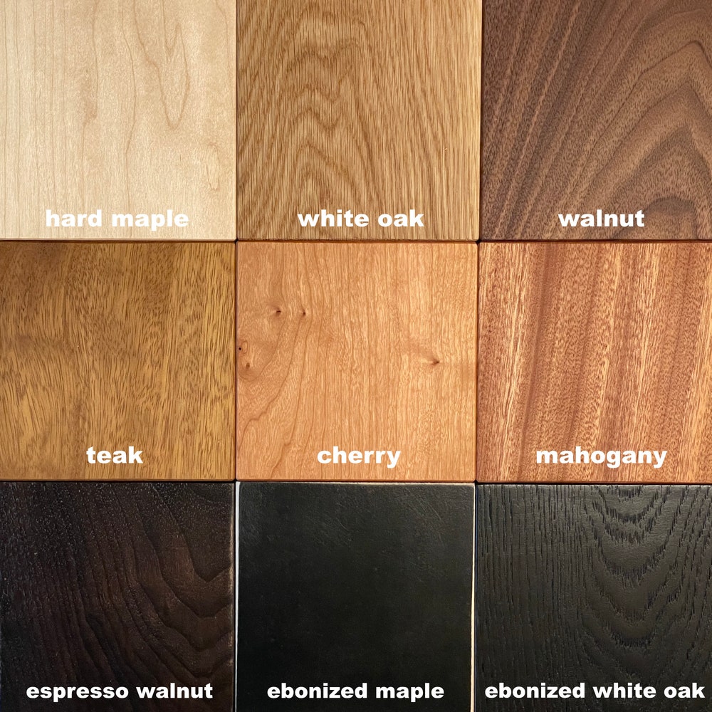 | Material | Walnut, Cherry, White Oak, Teak, Mahogany, Hard Maple, Walnut-Espresso, Ebonized White Oak, ebonized maple |