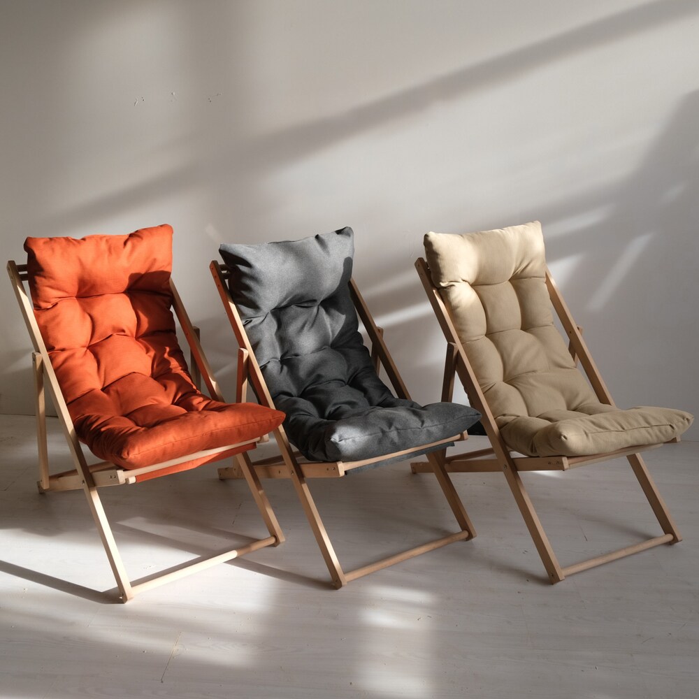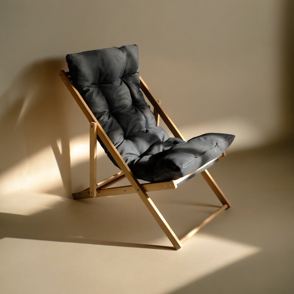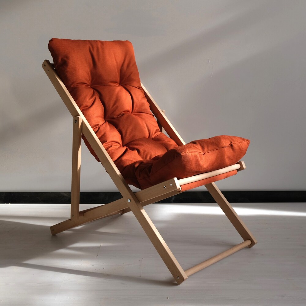 🌟 Introducing our handcrafted wooden sun lounger – the perfect addition to any garden, patio, or poolside. Designed to offer the ultimate relaxation experience, this elegant chaise lounge chair masterfully combines functionality with a touch of rustic charm. Our folding deck chair is your new companion for outdoor comfort and style. The sturdy frame is complemented by a plush, water-repellent cushion that invites you to indulge in comfort without concern — perfect for poolside reading or soaking up the sunshine on your patio.