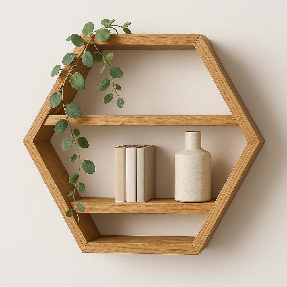 This handcrafted hexagonal wall shelf is more than furniture – it’s a statement. Designed for high-end interiors, this minimalist white oak shelf is the perfect blend of geometric elegance and organic craftsmanship. Each piece is custom-made using premium wood, hand-painted with a silky matte finish, and shipped with all necessary mounting hardware.