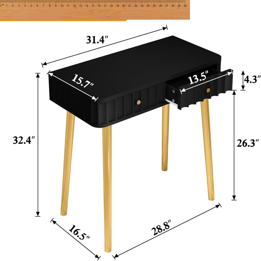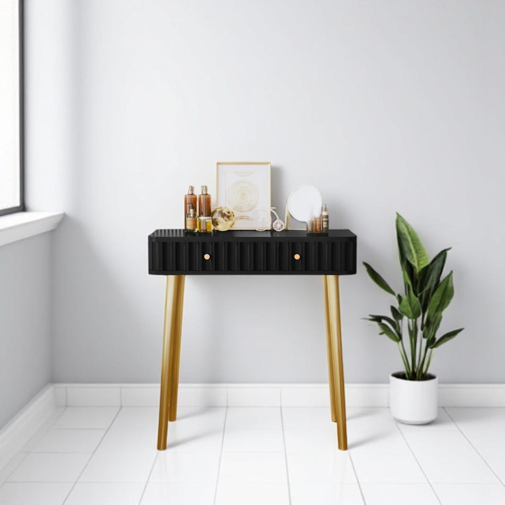 Makeup Vanity Desk – 32” Glossy Black Dressing Table with 2 Drawers & Water Ripple Design – Elegant Vanity for Bedroom, Studio, or Small Spaces (Black/White/Gold)
