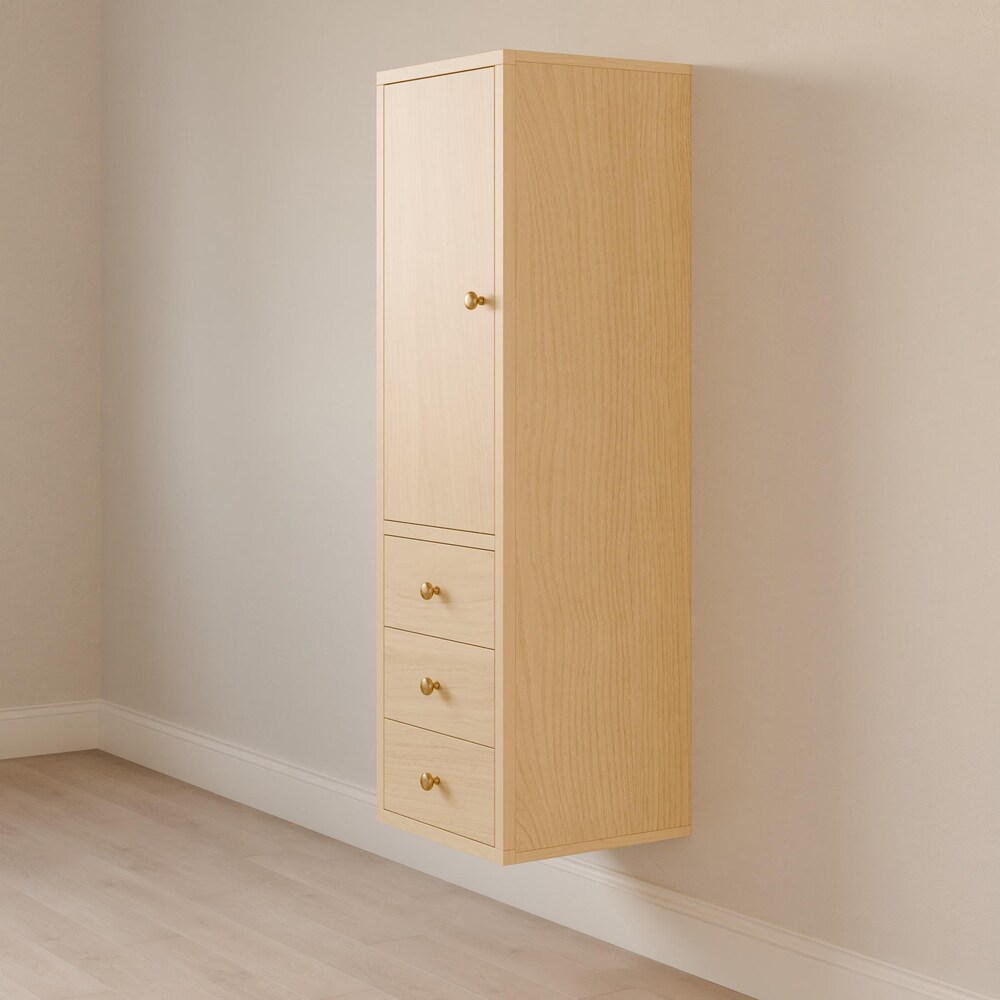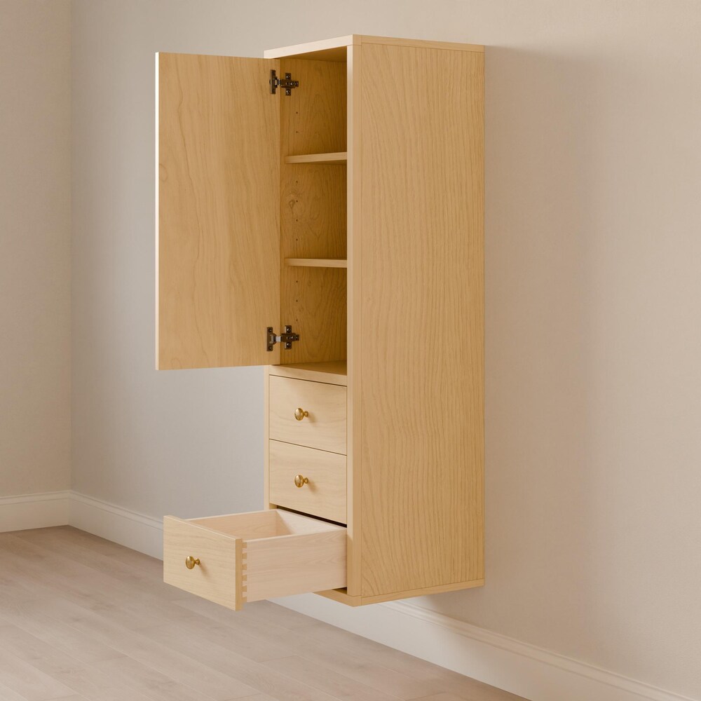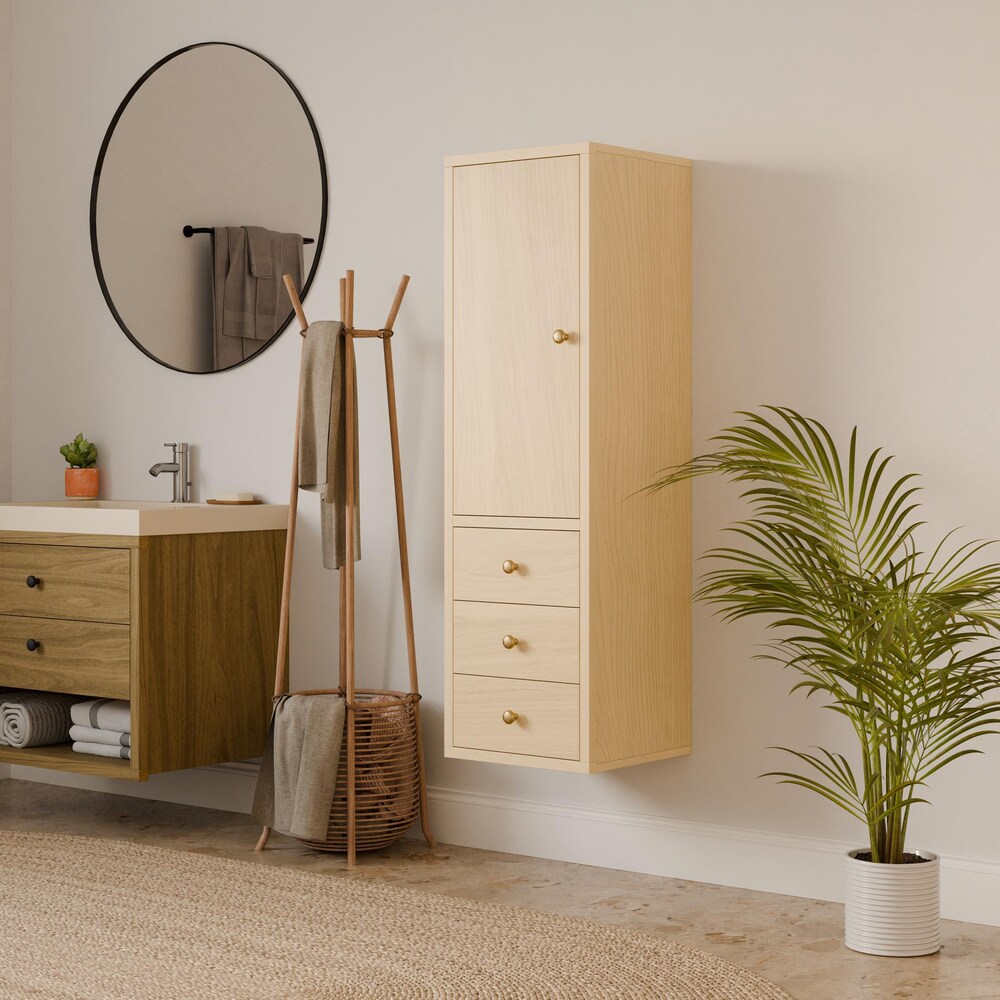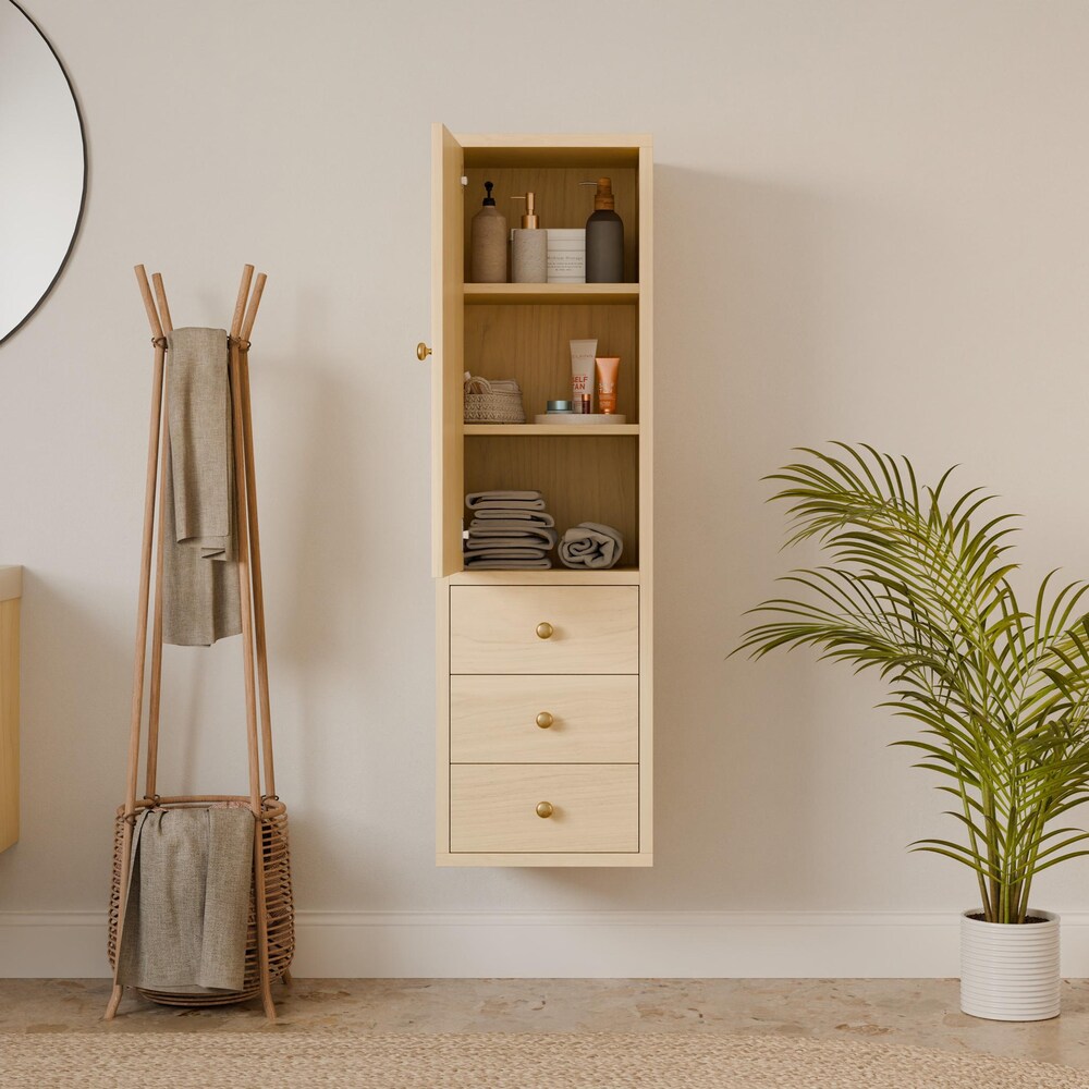 Maple Bathroom Linen Storage Cabinet with 3 Drawers, Tall