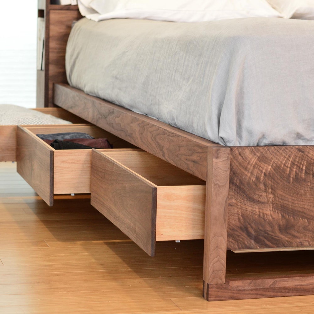 Maple Bed with headboard storage and charging, Platform Bed frame with drawers, Queen bed, King bed, Wooden Platform bed frame
