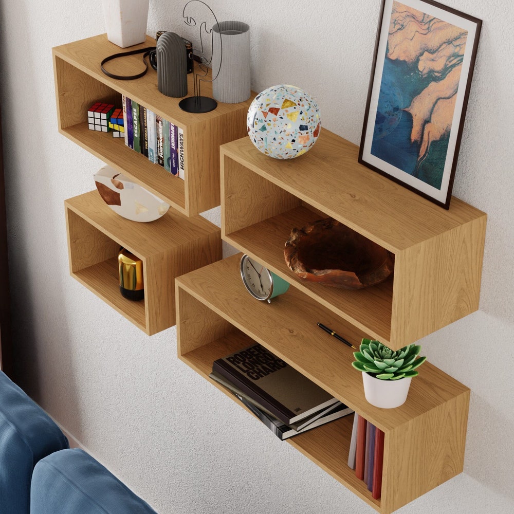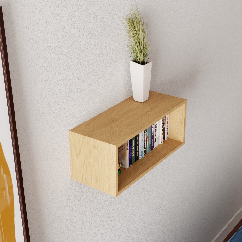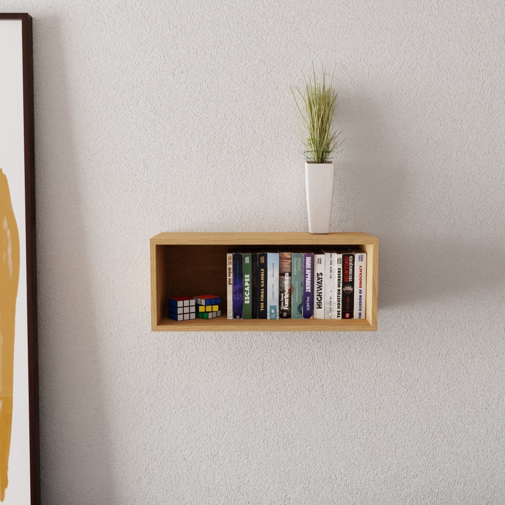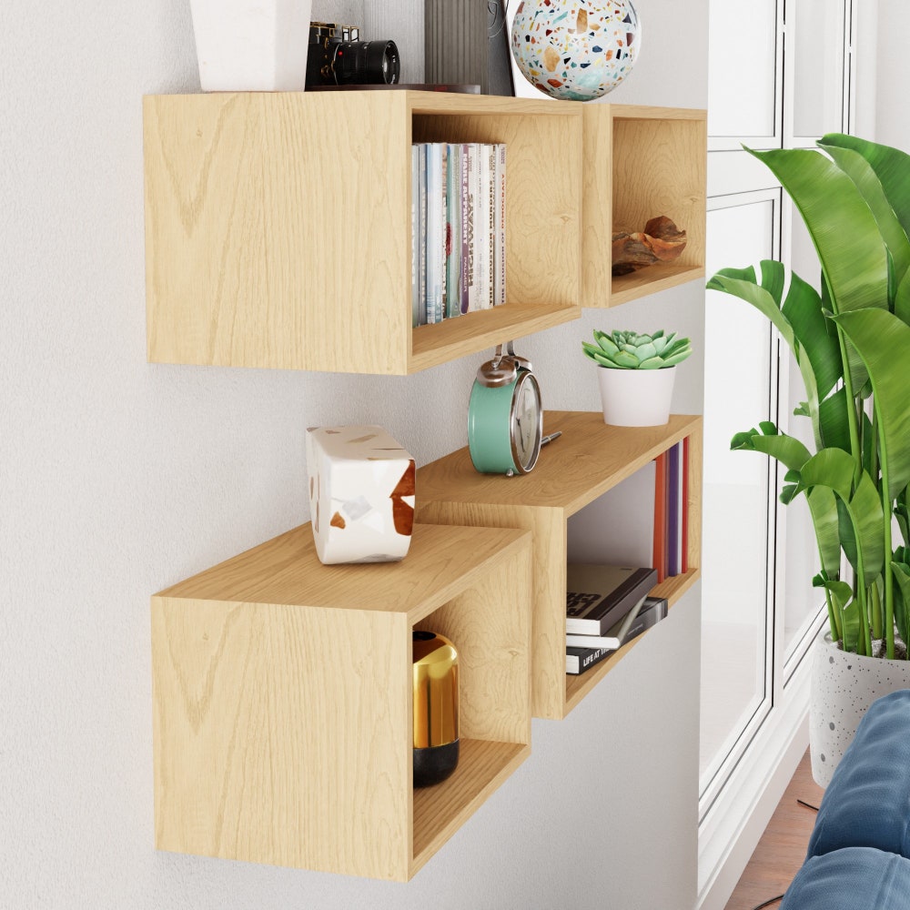 Maple Floating Bookshelf Storage Cabinet Display Case