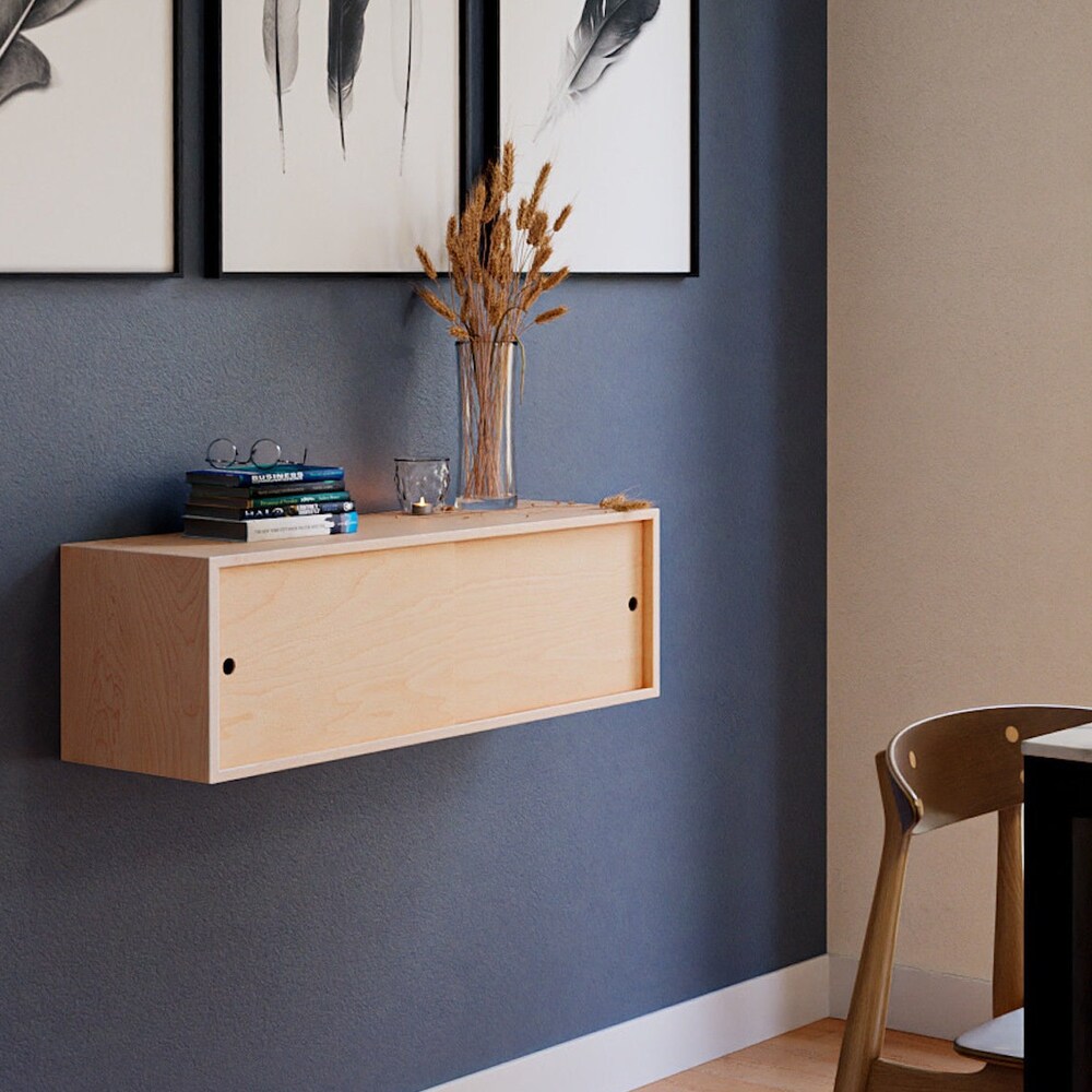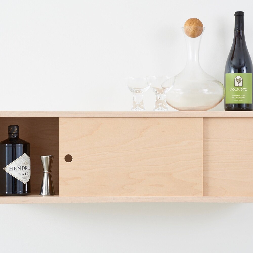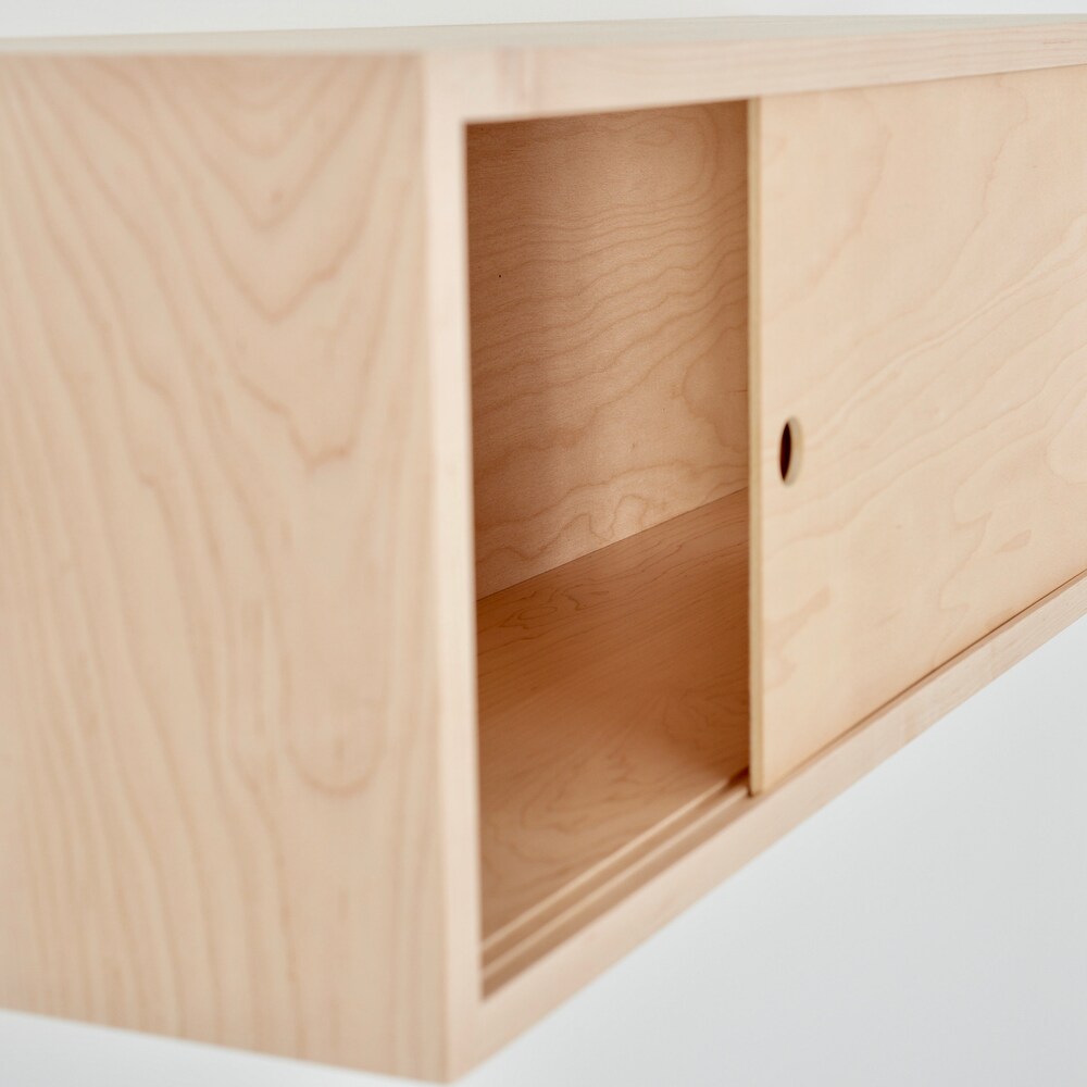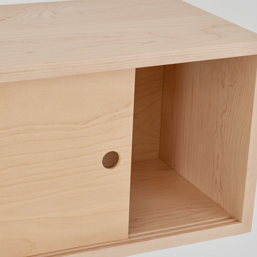 Maple Floating Storage Cabinet with Sliding Doors, Scandinavian Style