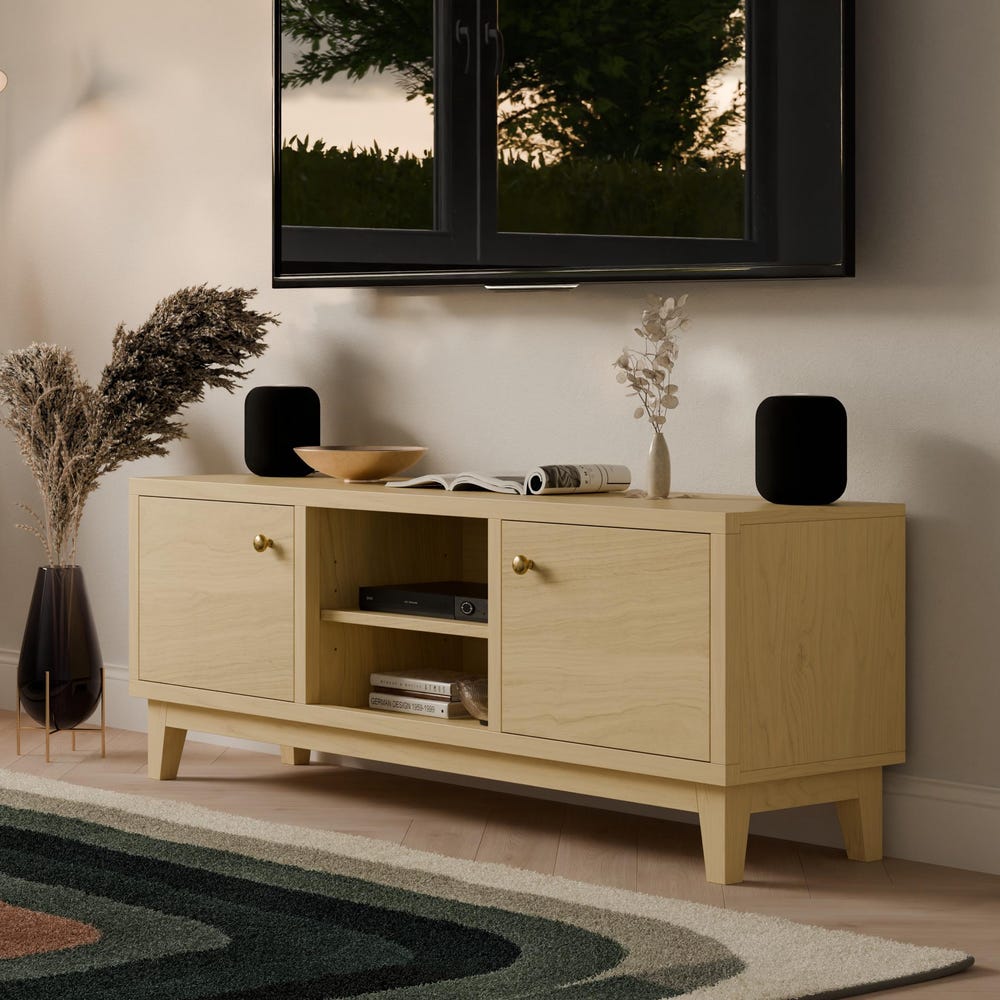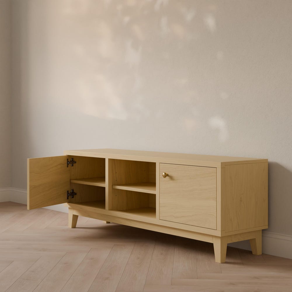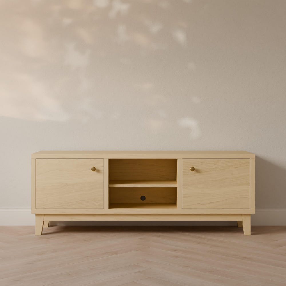 Arrives fully assembled at your door. Built from premium grade 3/4″ real Maple veneer with a 1/2″ back, Solid Maple face frame and legs, this Media Table is built for strength and longevity.