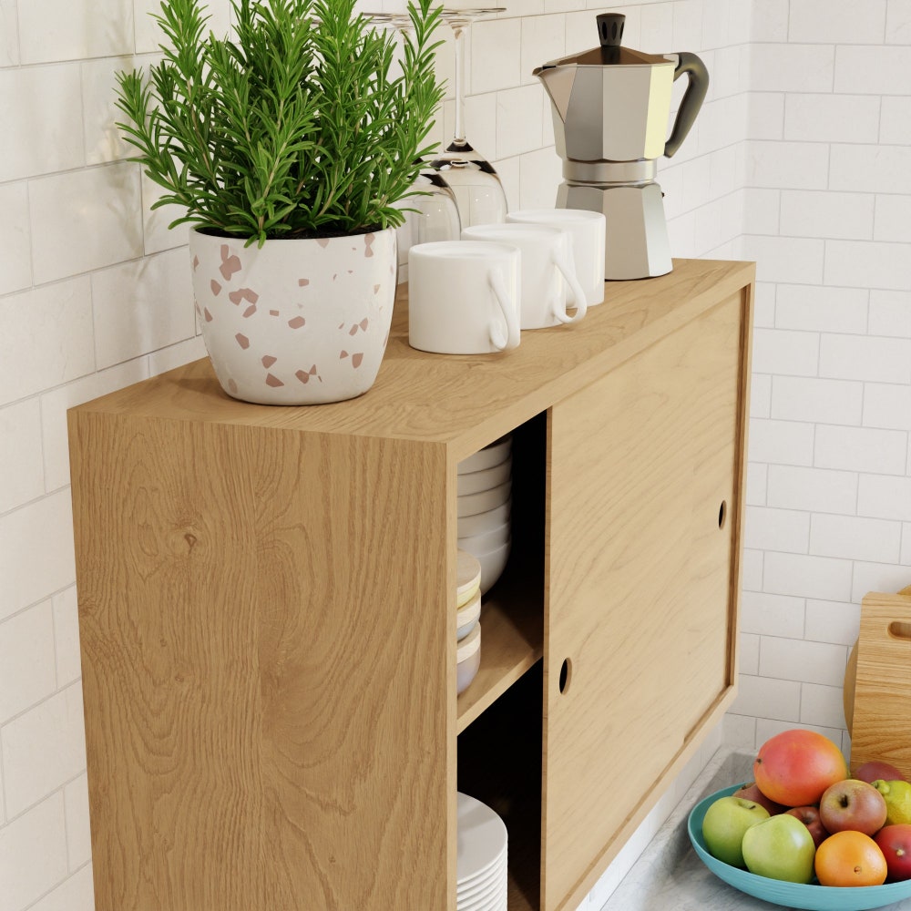 Maple Storage Cabinet with Sliding Doors, Kitchen Cupboard