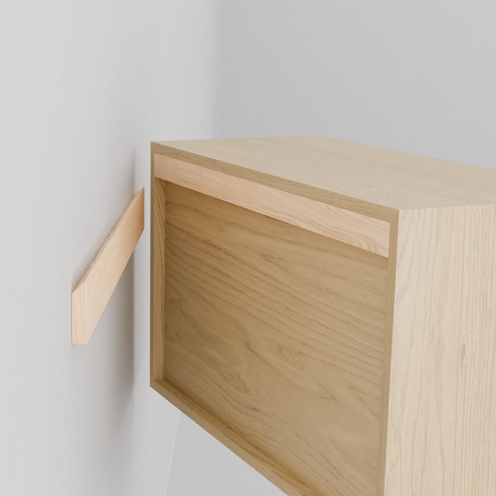 Each piece is fitted with an integrated solid wood French Cleat for easy install. All mounting hardware (included) is hidden behind the back for a clean, “floating” appearance.