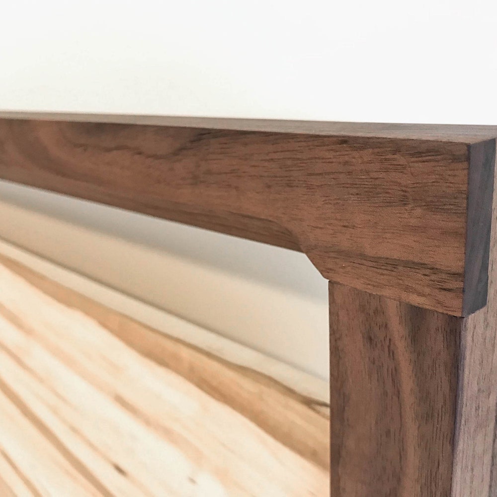 Handcrafted with non-toxic responsibly sourced materials in Seattle, WA to be a lifetime purchase. The Alki Bed is sleek, and efficient, with exposed bridal joints, and an optional slanted headboard.