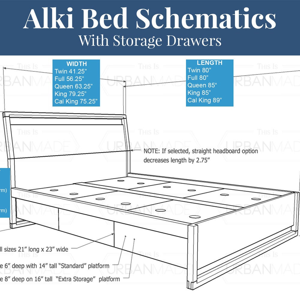 • Standard Platform is 14″ tall with drawers that are 6″ tall.