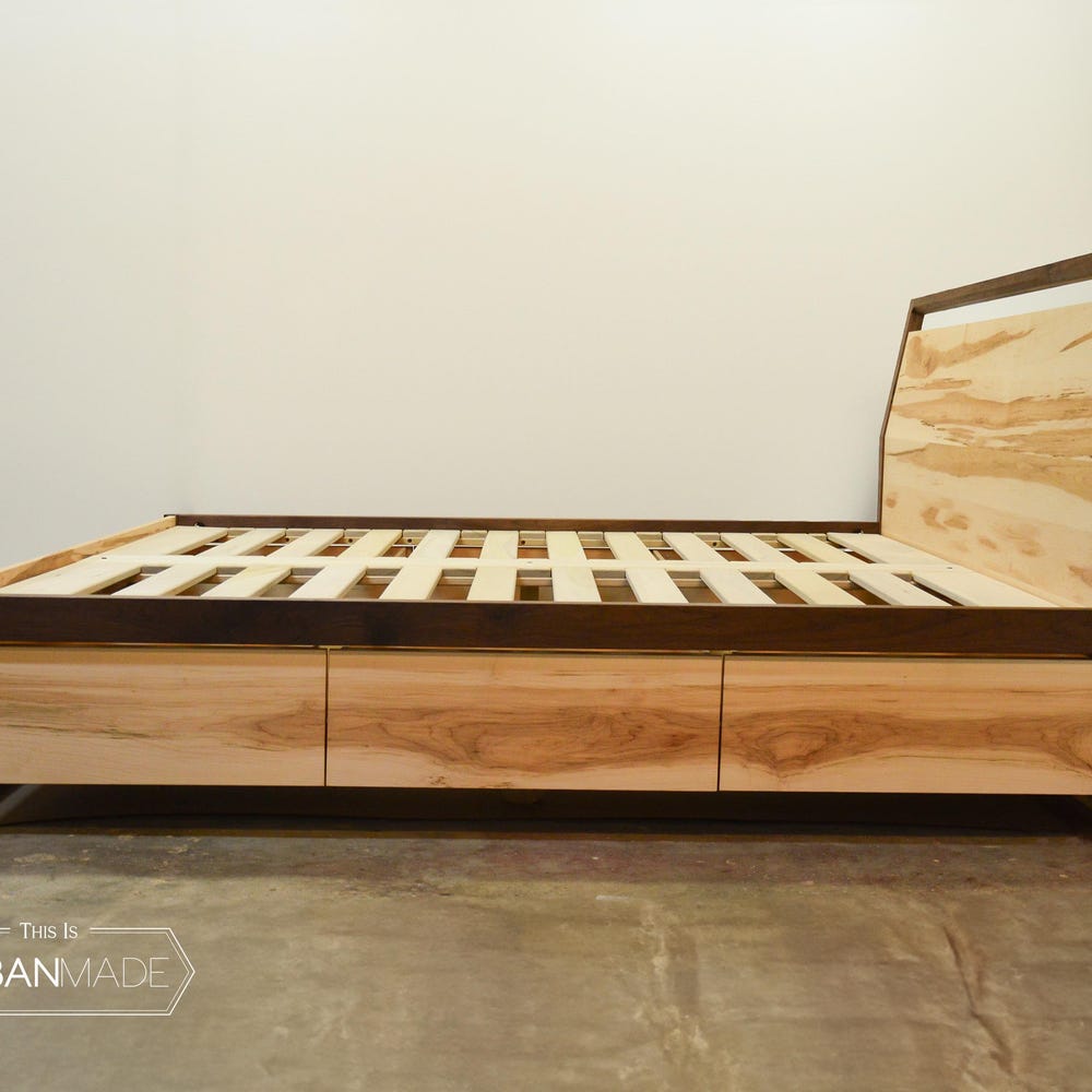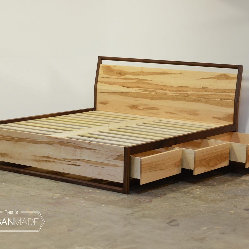 Maple & Walnut Platform bed with storage drawers, Storage Bed, platform bed with drawers, Queen bed, King bed, Wooden Bed Frame