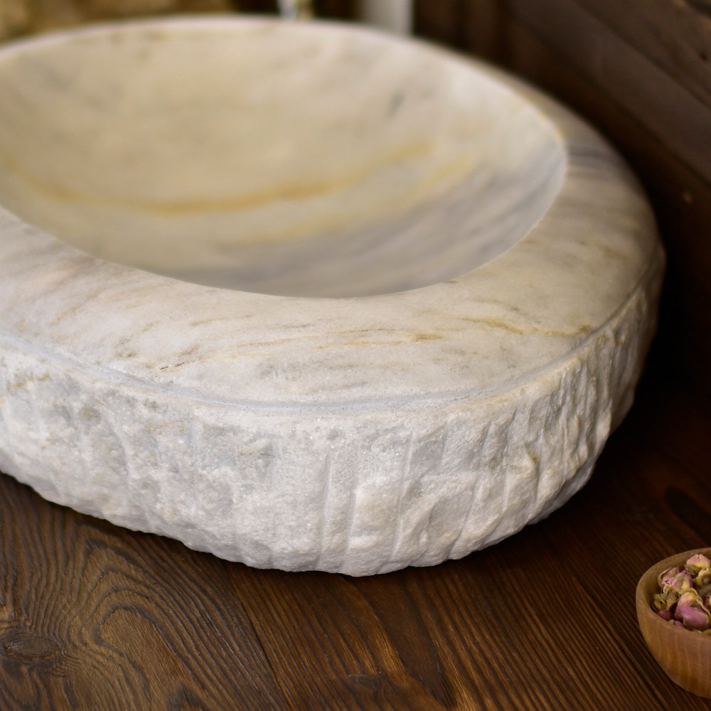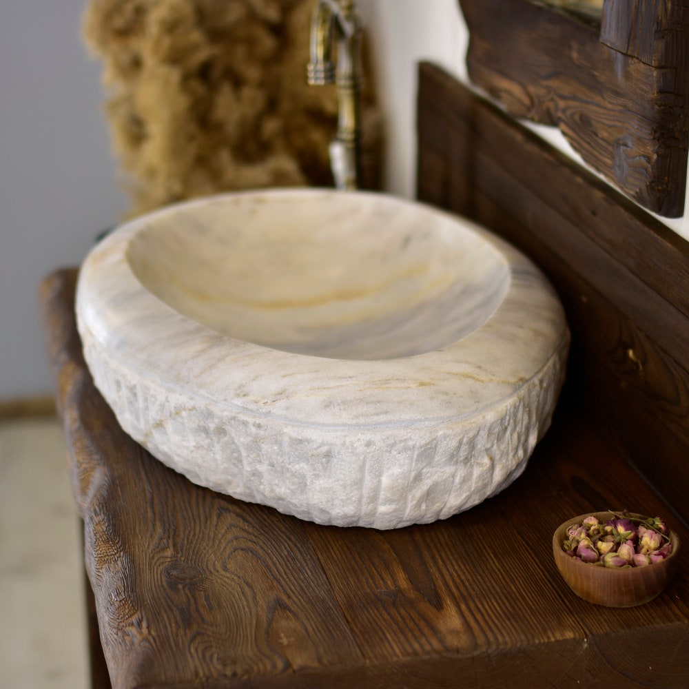 Marble Stone Round Handmade, Bathroom Sink Vanity, Marble Bowl, Bowl Sink, Stone Vessel Sink, Kitchen Sink, Irregular Shape Marble Stone
